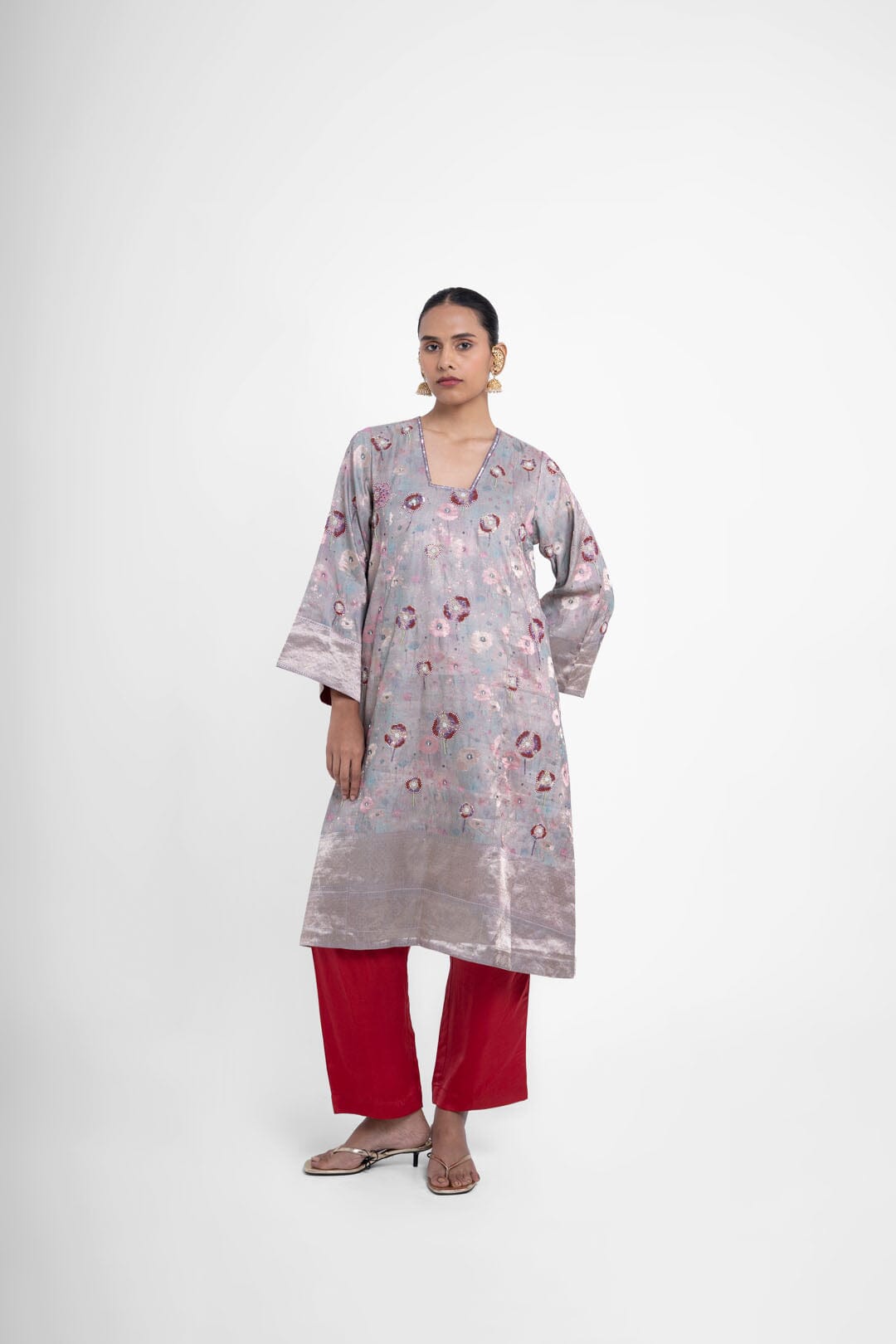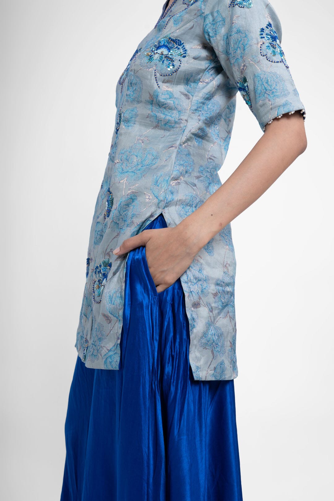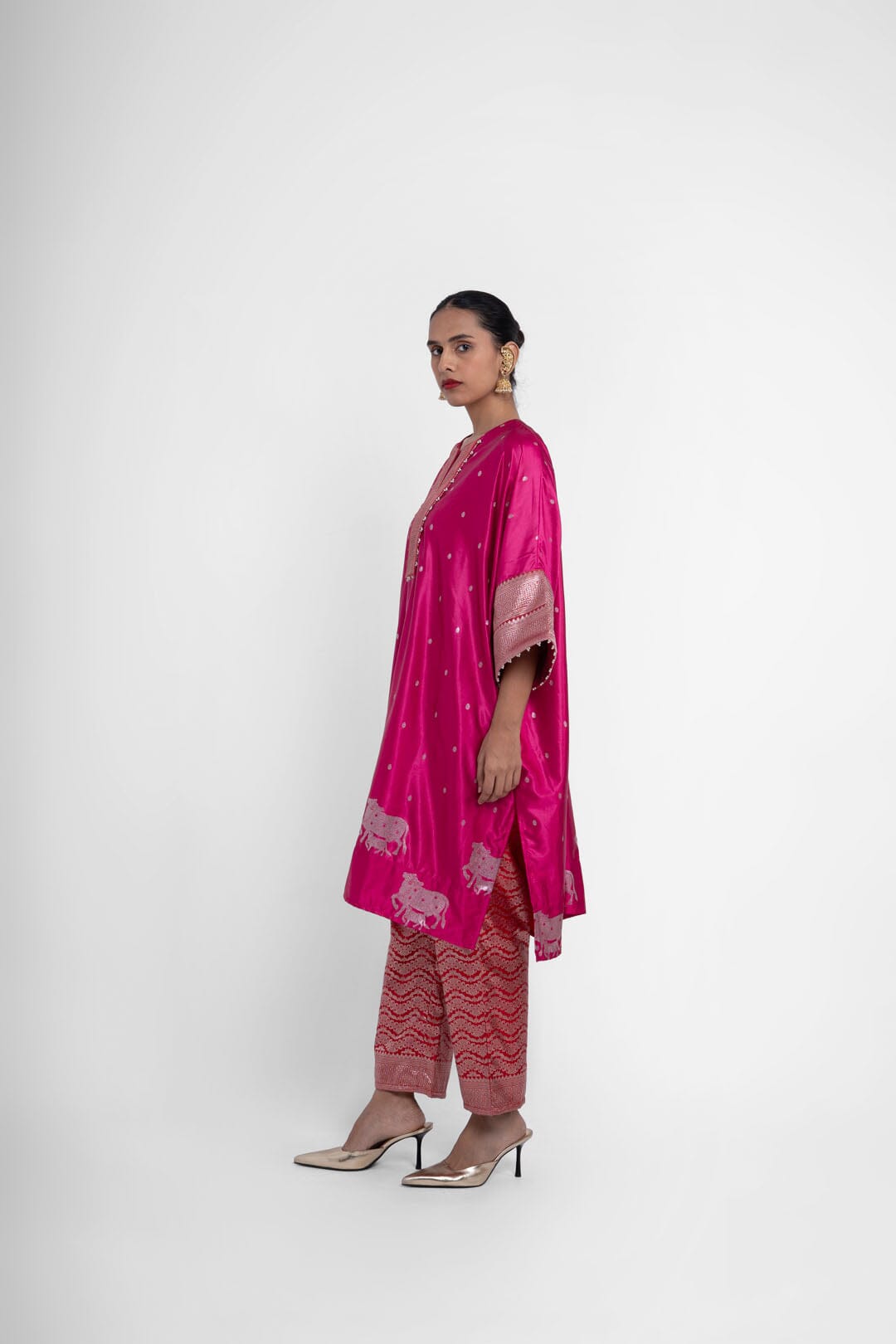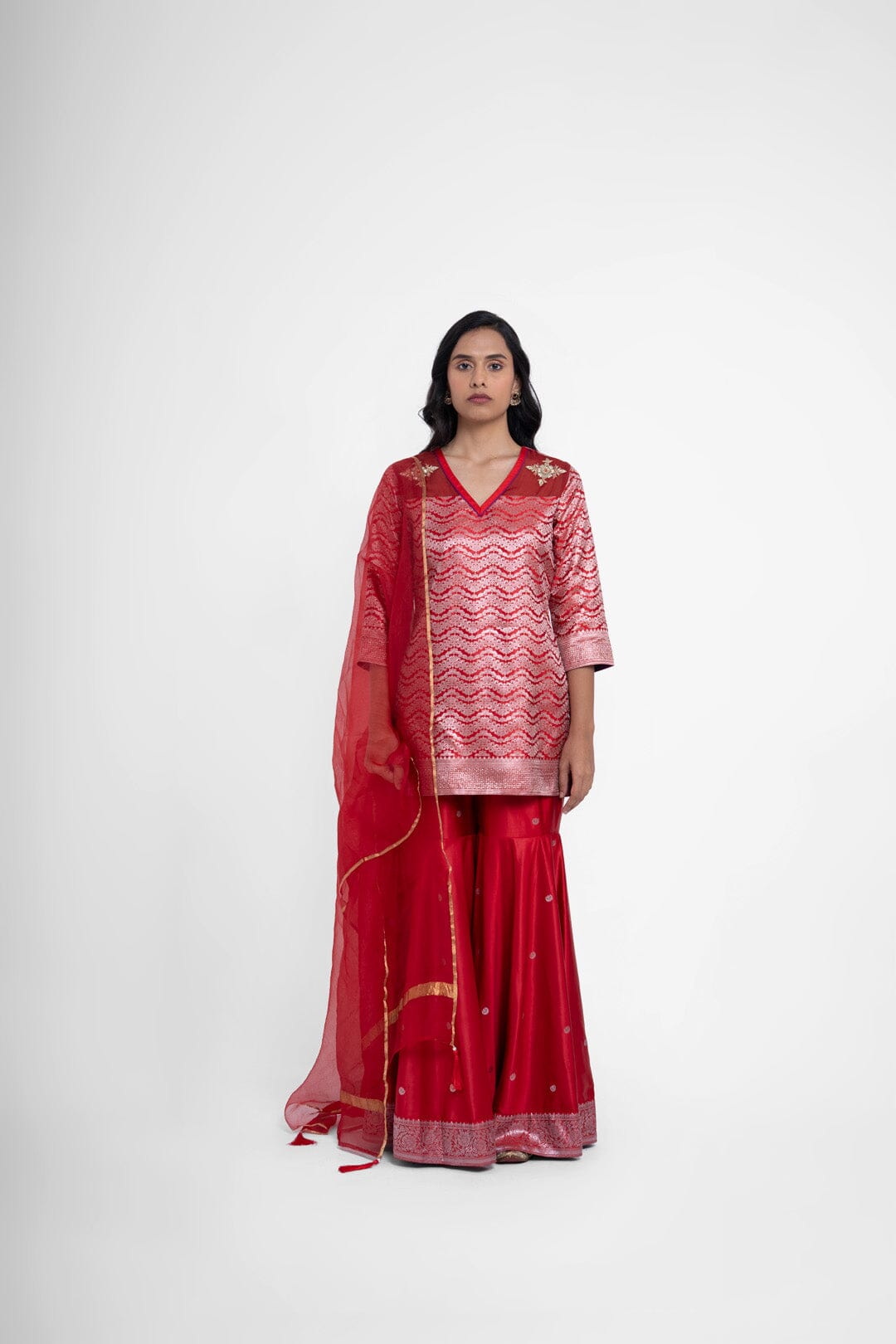Shriya Singhi es una etiqueta de Varanasi. Todas sus piezas están creadas con Banarsi Silk, una fina variante de Silk originaria de la ciudad de Banaras. La elaboración de la seda Banarasi en Shriya Singhi es un hermoso viaje que se desarrolla a medida que los artesanos de Banaras crean la tela desde cero. Cada pieza encargada está meticulosamente hecha a mano creando una pieza única.