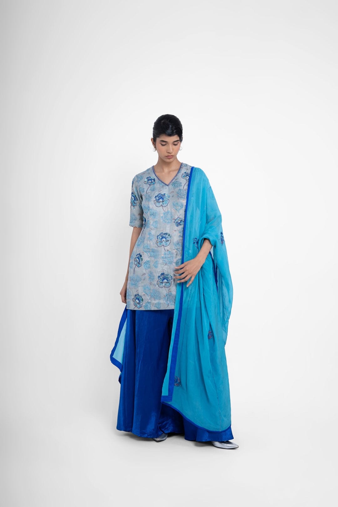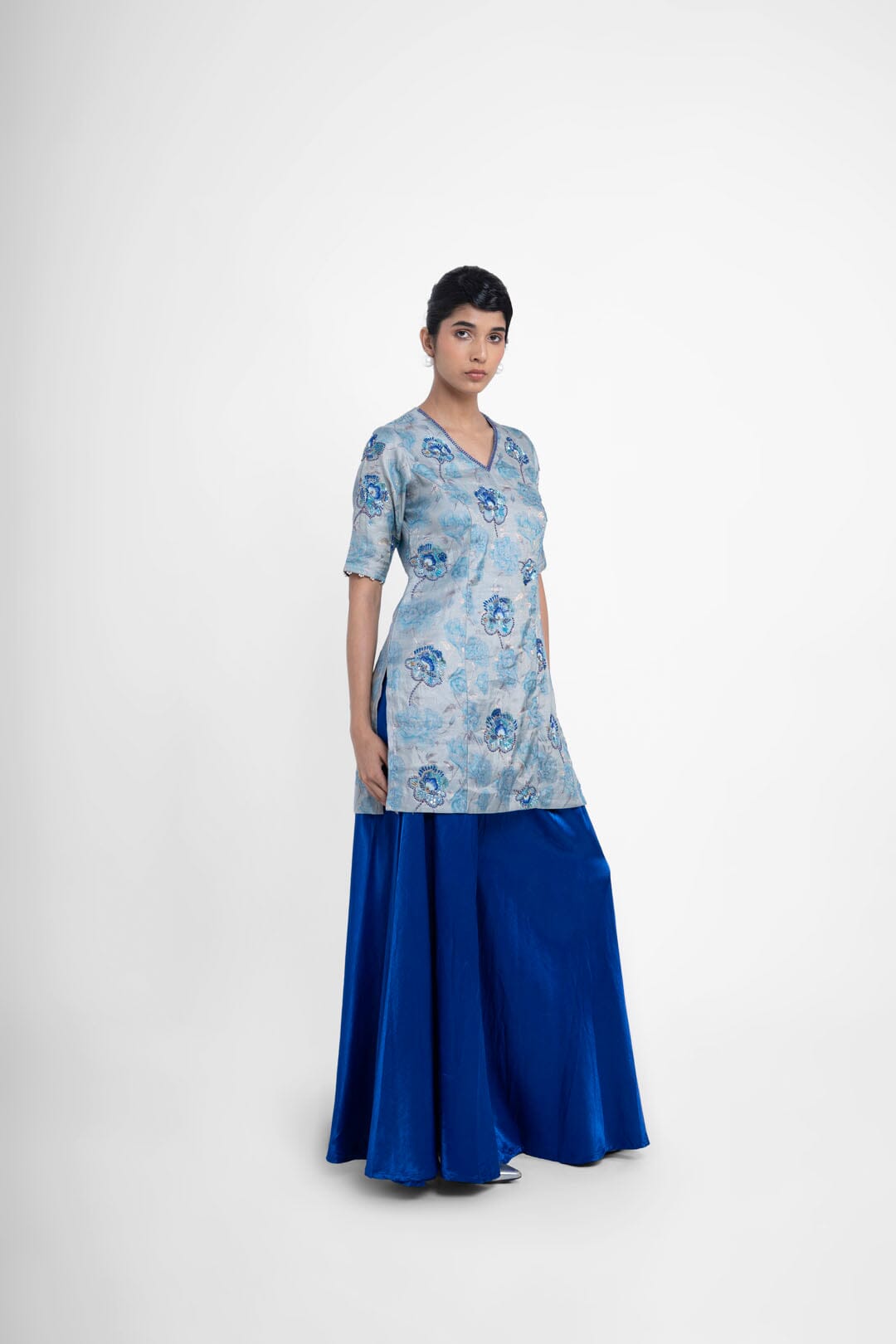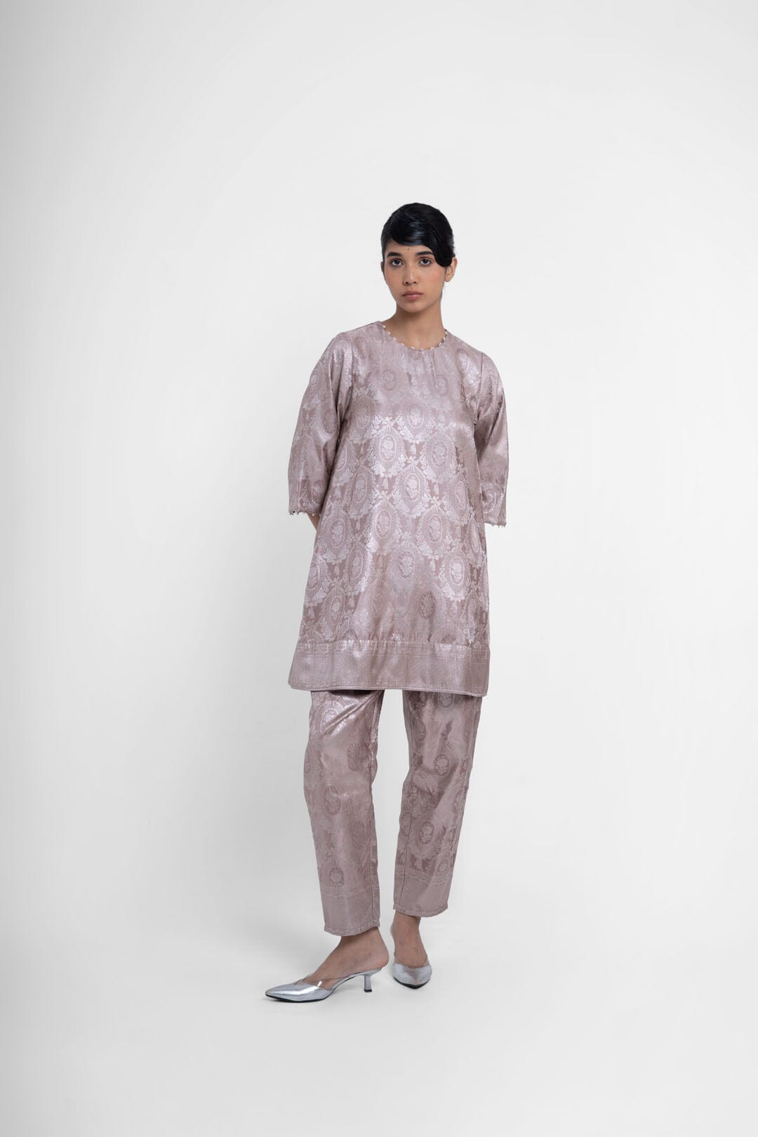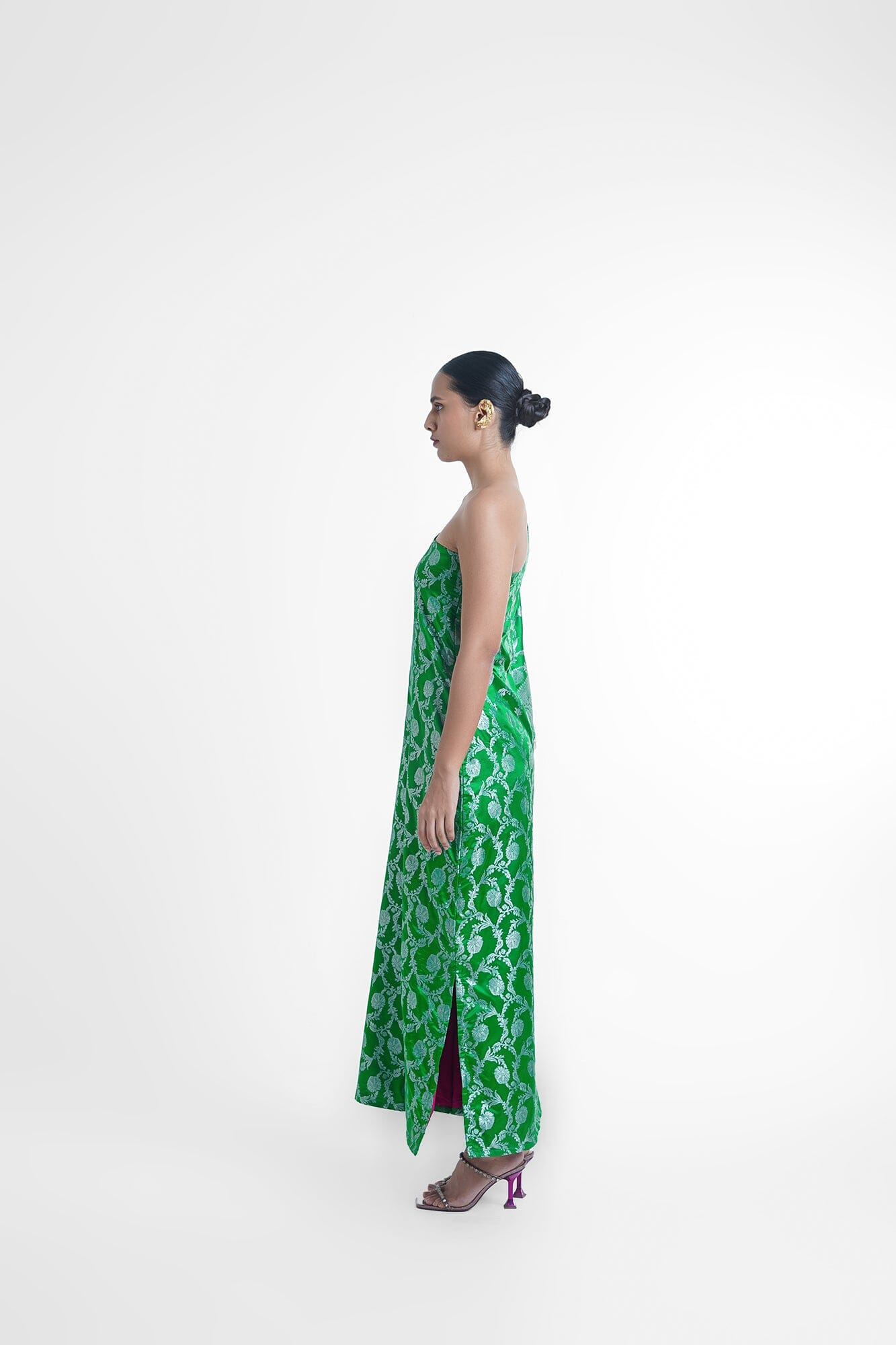 Shriya Singhi es una etiqueta de Varanasi. Todas sus piezas están creadas con Banarsi Silk, una fina variante de Silk originaria de la ciudad de Banaras. La elaboración de la seda Banarasi en Shriya Singhi es un hermoso viaje que se desarrolla a medida que los artesanos de Banaras crean la tela desde cero. Cada pieza encargada está meticulosamente hecha a mano creando una pieza única.