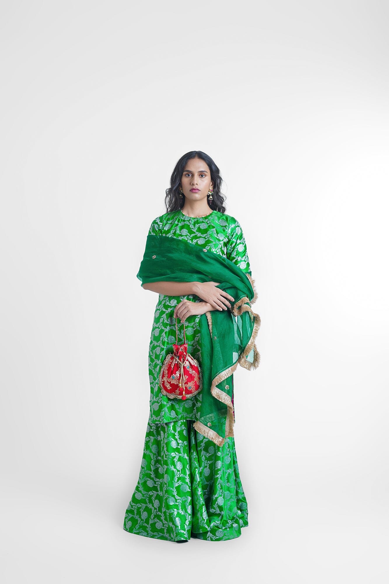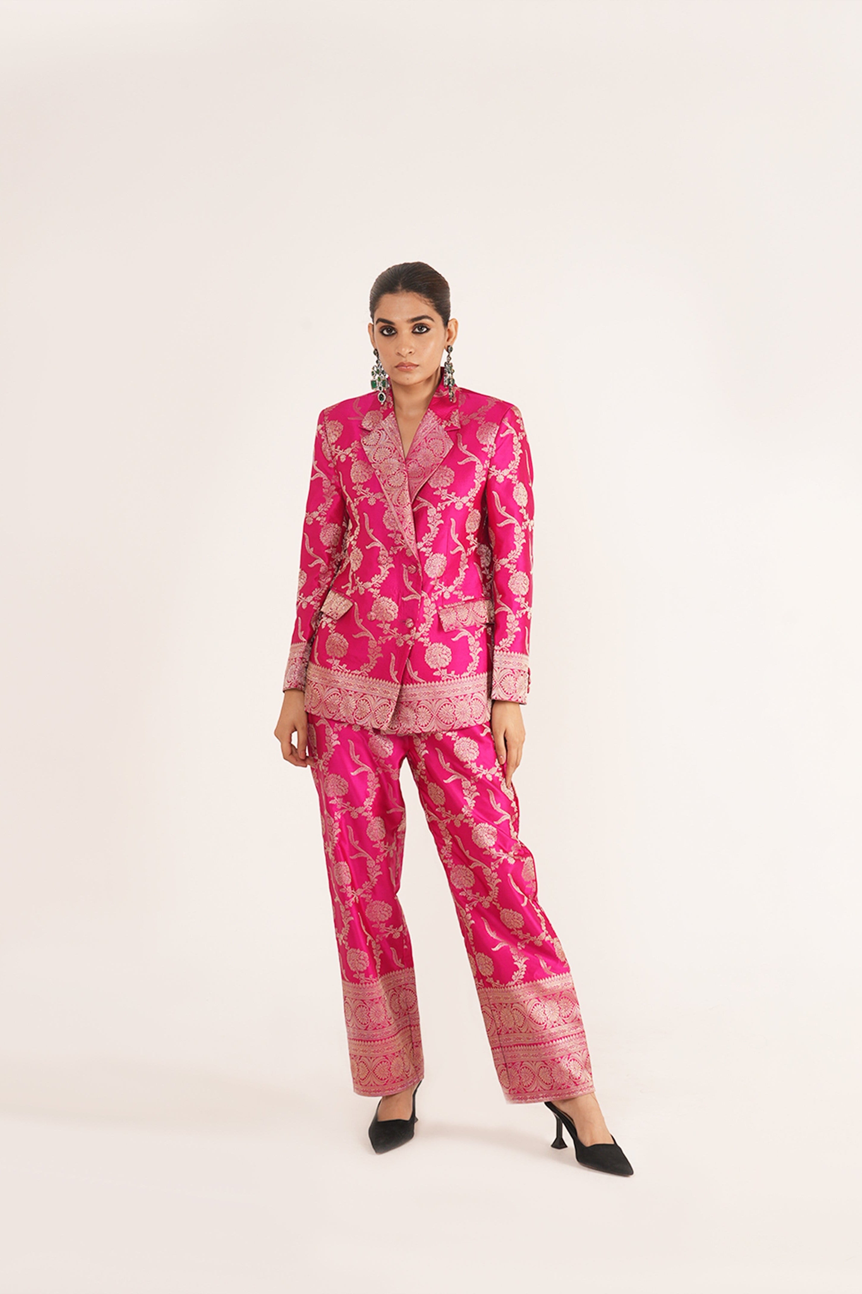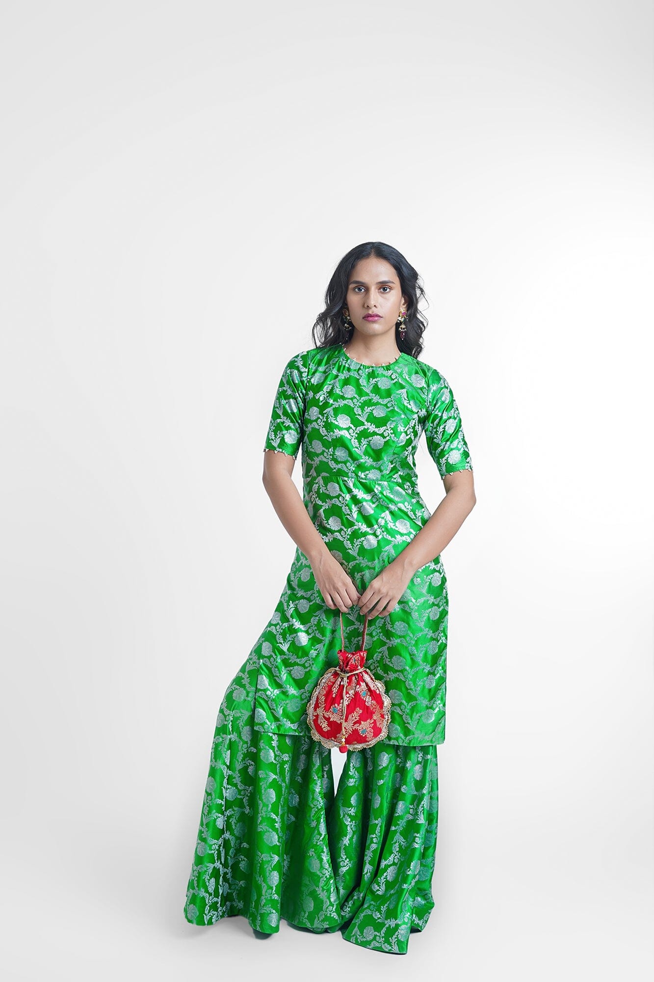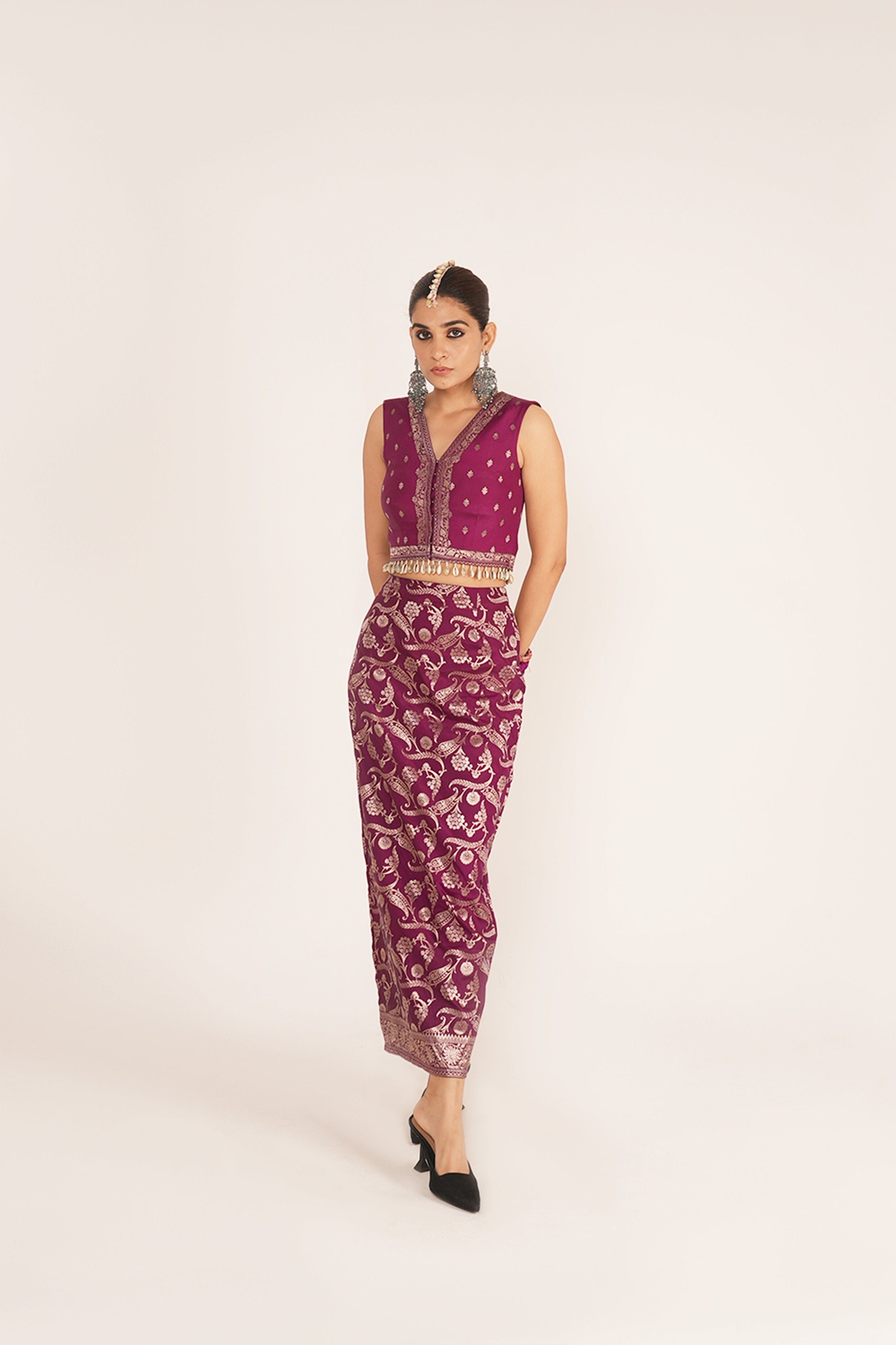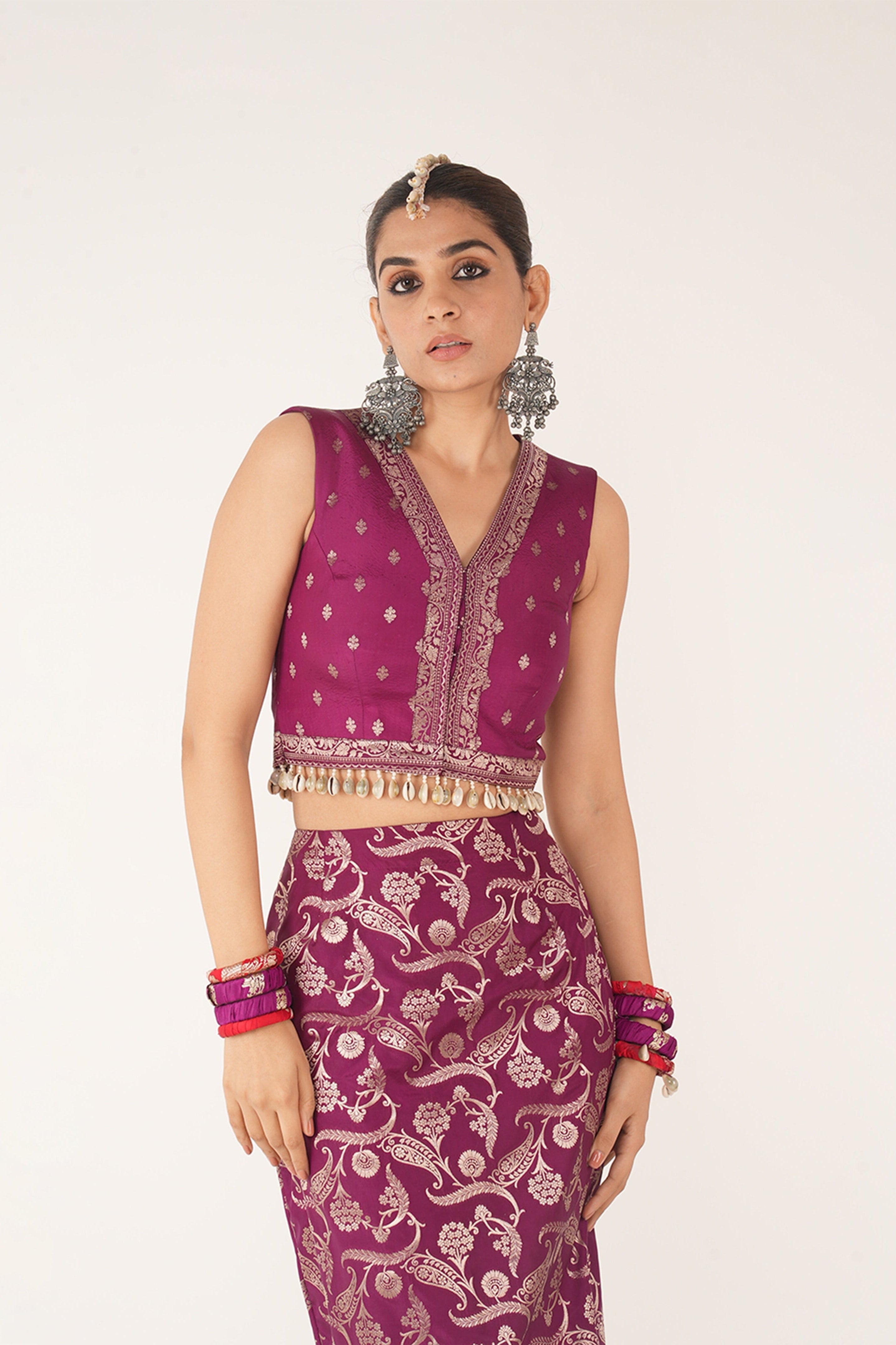 Shriya Singhi es una etiqueta de Varanasi. Todas sus piezas están creadas con Banarsi Silk, una fina variante de Silk originaria de la ciudad de Banaras. La elaboración de la seda Banarasi en Shriya Singhi es un hermoso viaje que se desarrolla a medida que los artesanos de Banaras crean la tela desde cero. Cada pieza encargada está meticulosamente hecha a mano creando una pieza única.