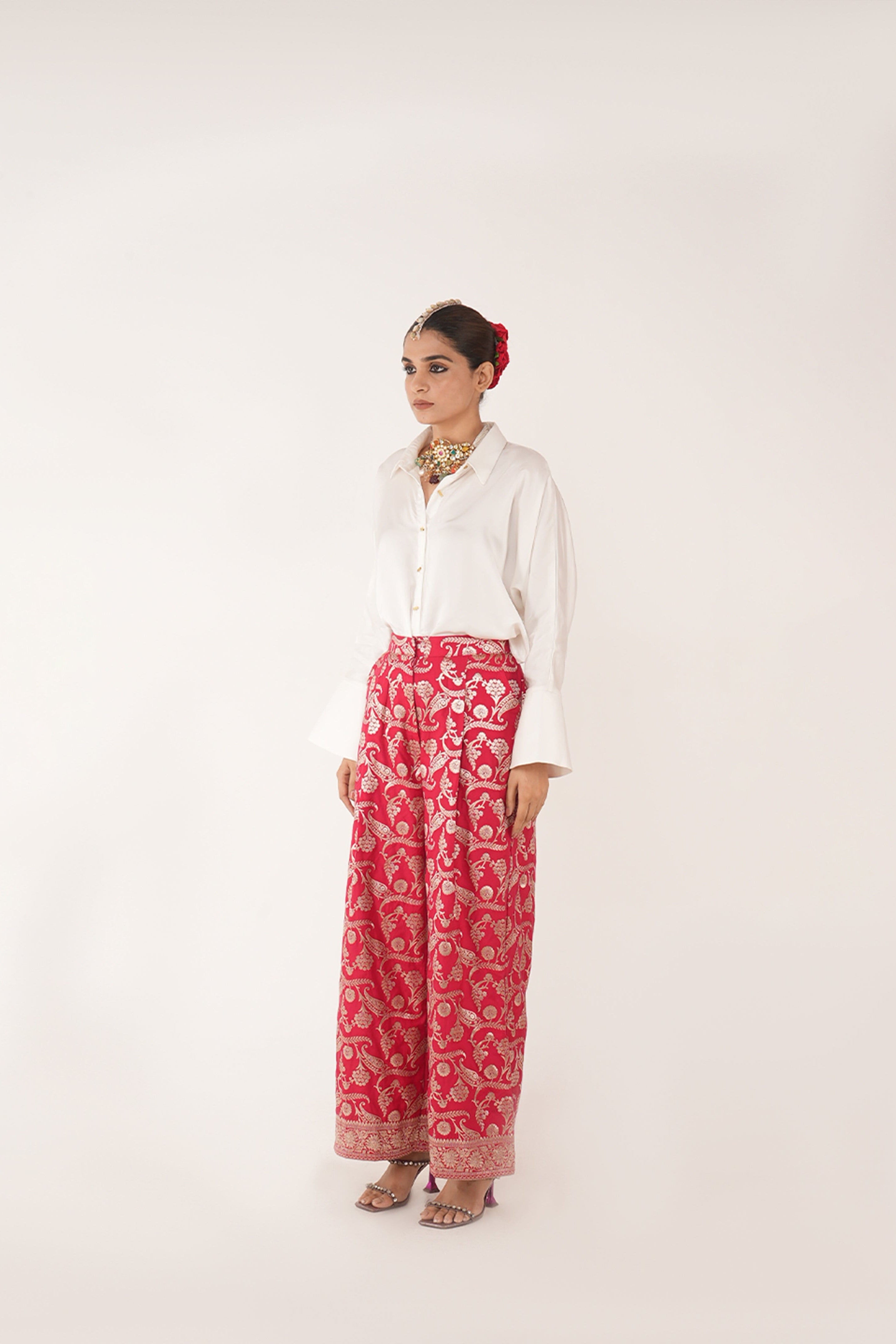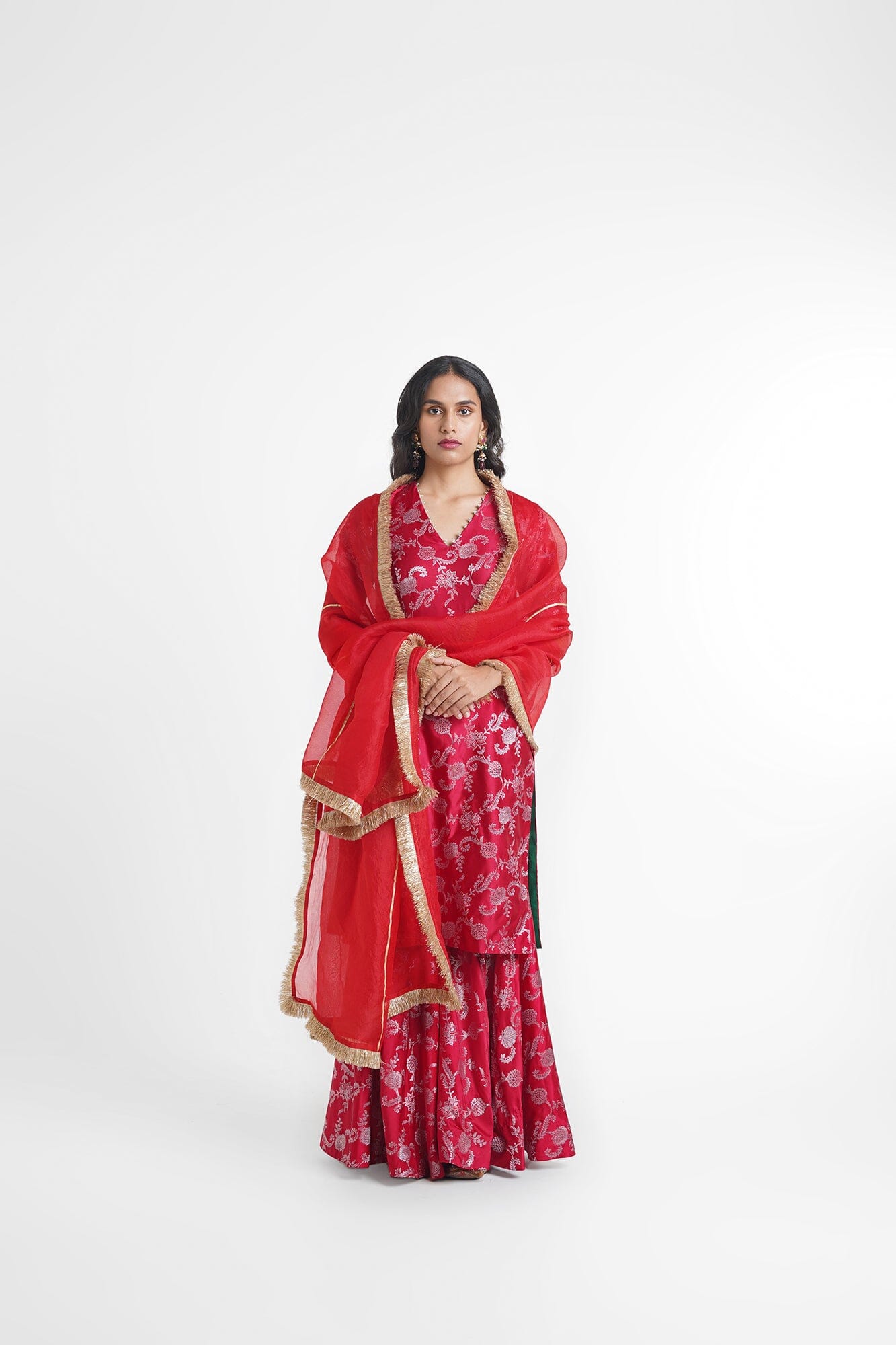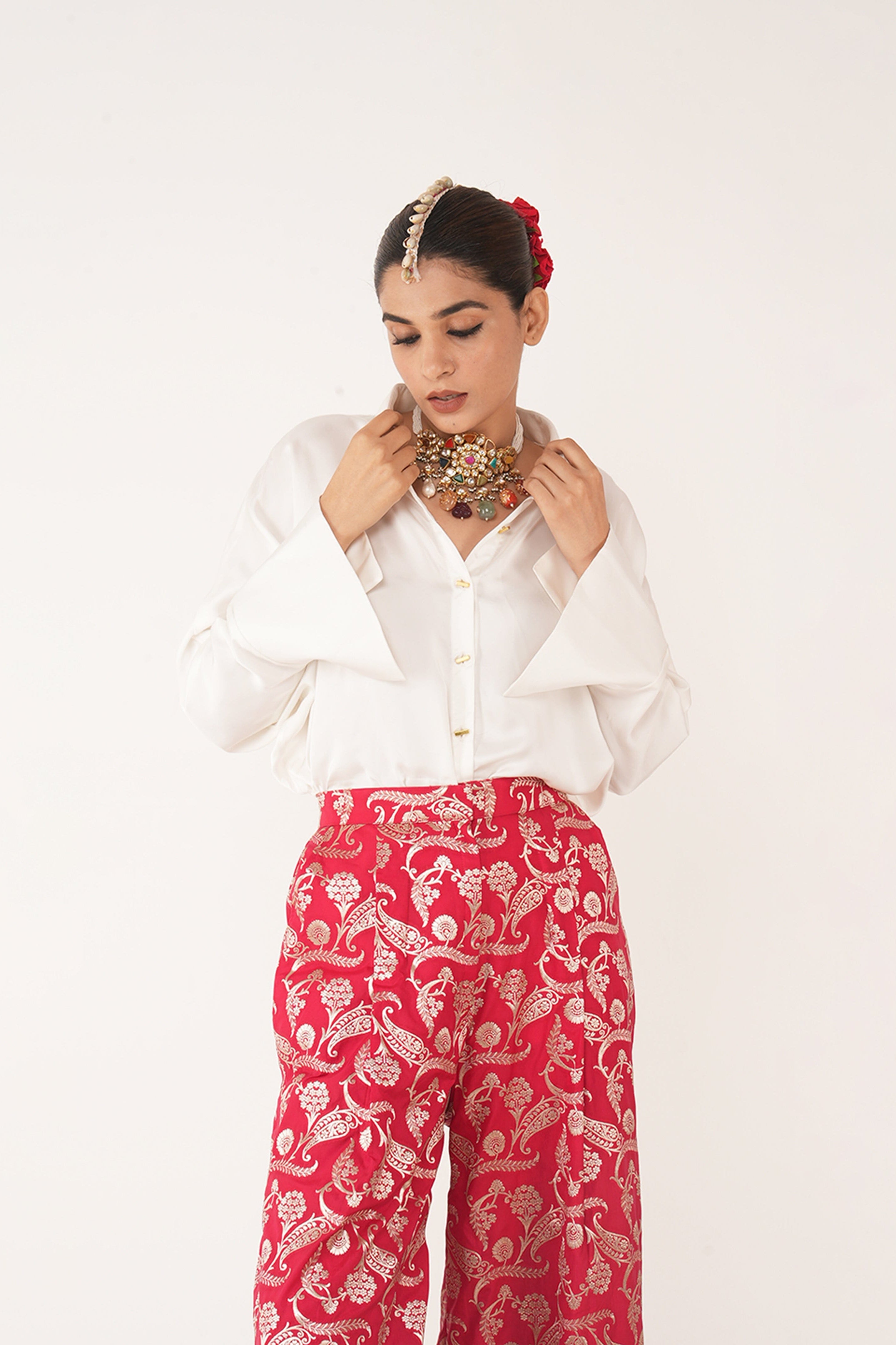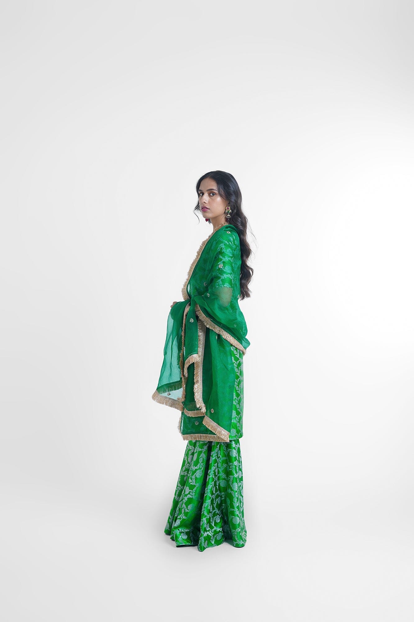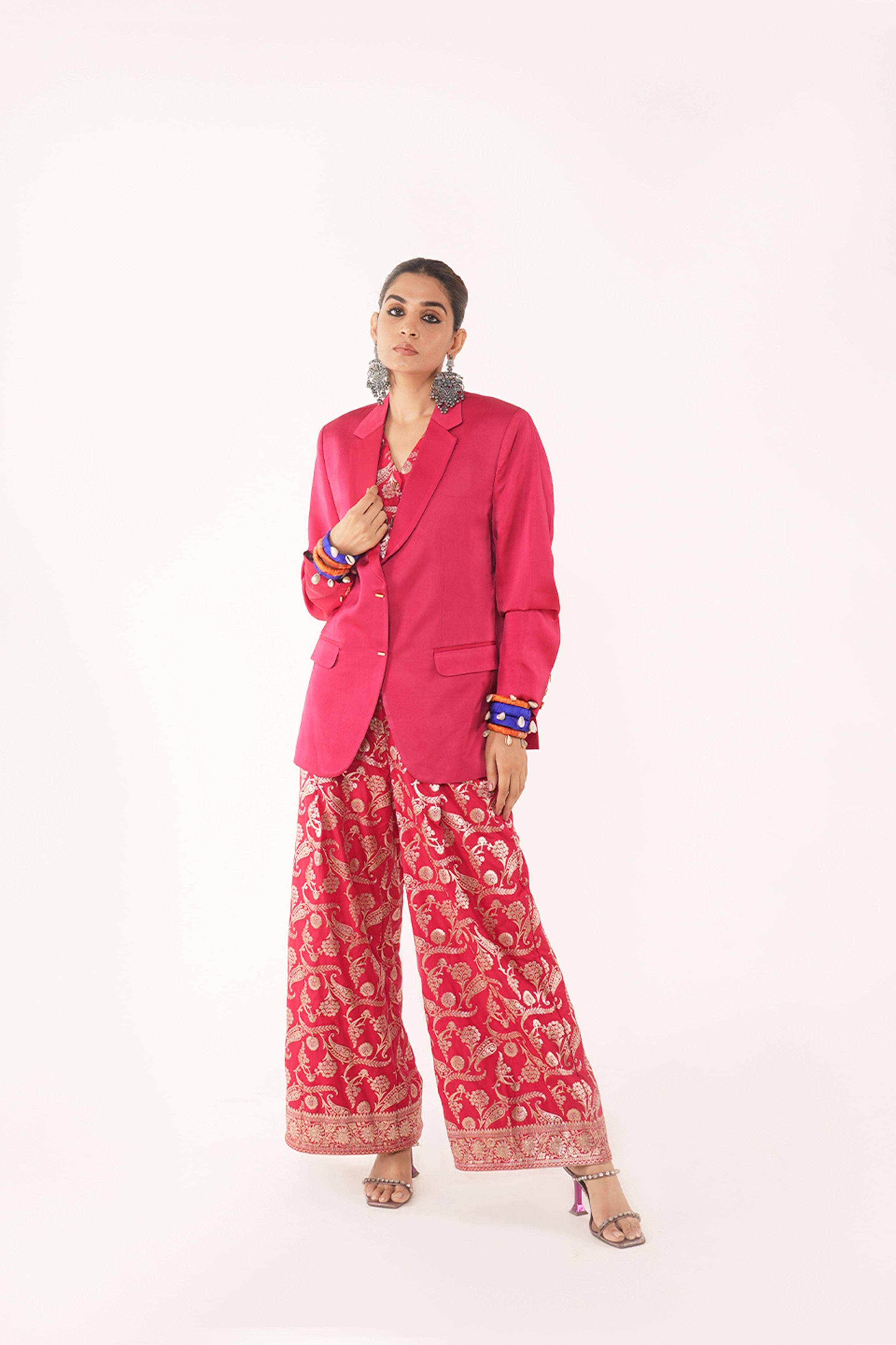 Shriya Singhi es una etiqueta de Varanasi. Todas sus piezas están creadas con Banarsi Silk, una fina variante de Silk originaria de la ciudad de Banaras. La elaboración de la seda Banarasi en Shriya Singhi es un hermoso viaje que se desarrolla a medida que los artesanos de Banaras crean la tela desde cero. Cada pieza encargada está meticulosamente hecha a mano creando una pieza única.