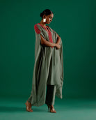 Conjunto caftán verde coral con cautivadoras mangas tipo capa -