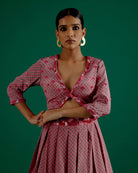 Falda estampada fuccia. La blusa diseñada con buen gusto