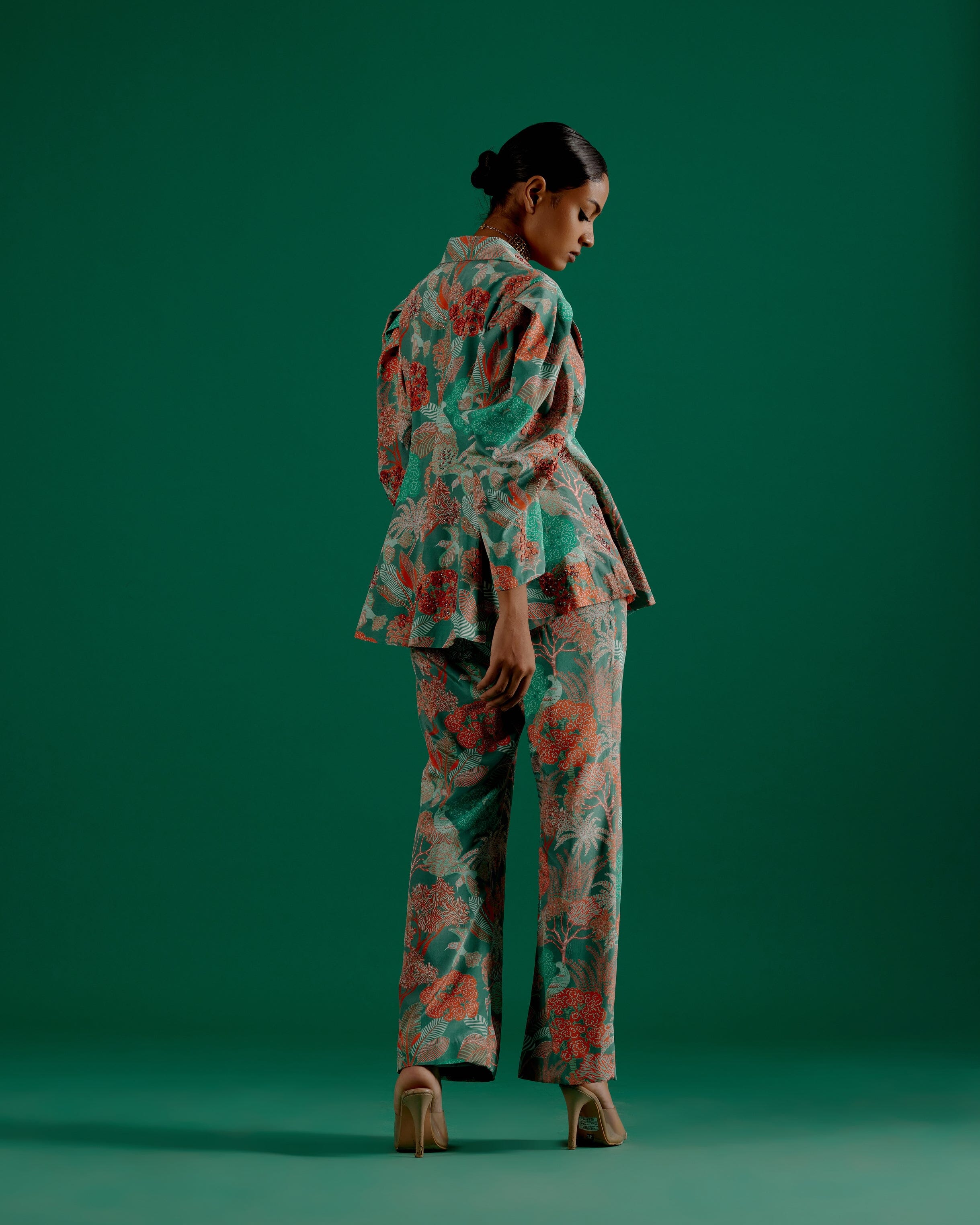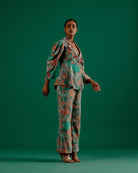 estampado floral. El conjunto presenta una encantadora blusa con un