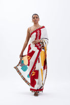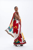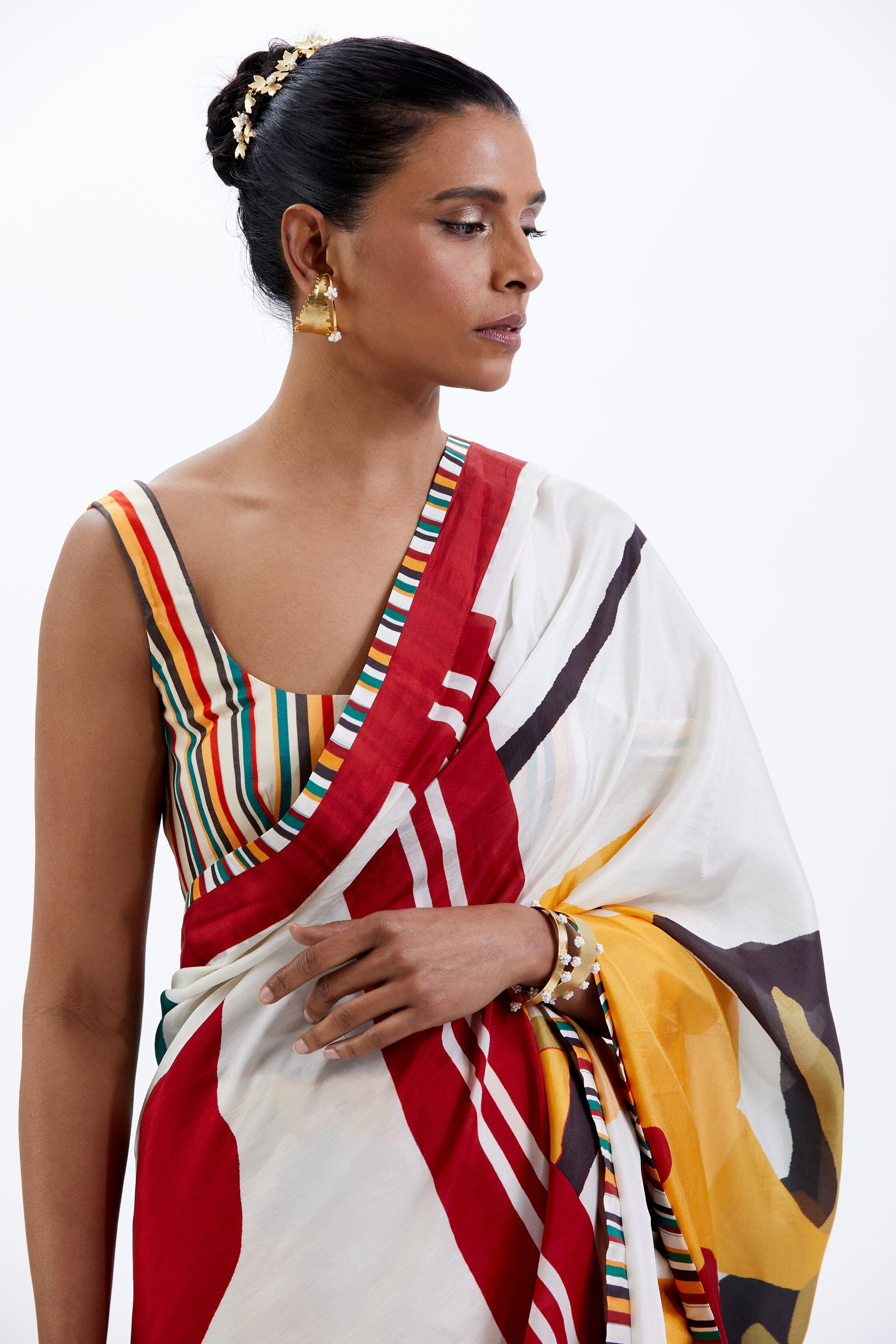 Se presenta en conjunto con una blusa estampada multicolor a juego y