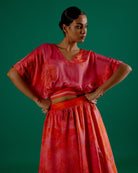 Presentando una lehenga vibrante en tonos brillantes de rosa.
