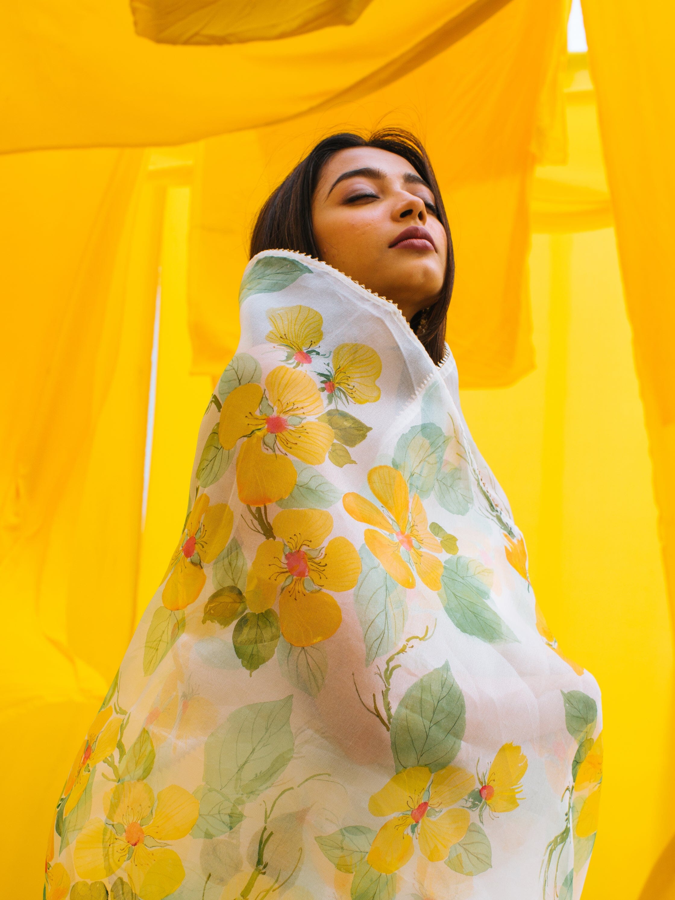 Una Dupatta de Organza pintada a mano hecha a medida.