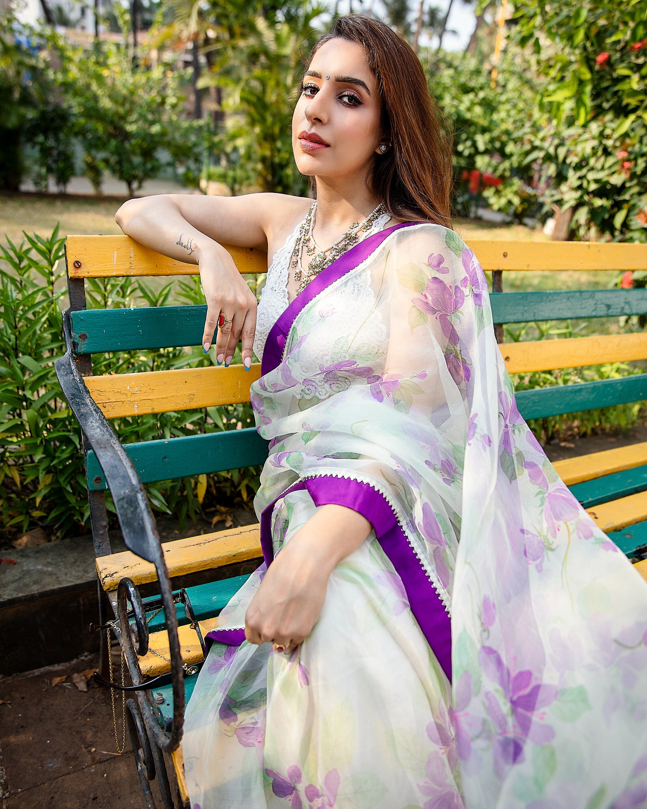 Un sari de organza pintado a mano hecho a medida.