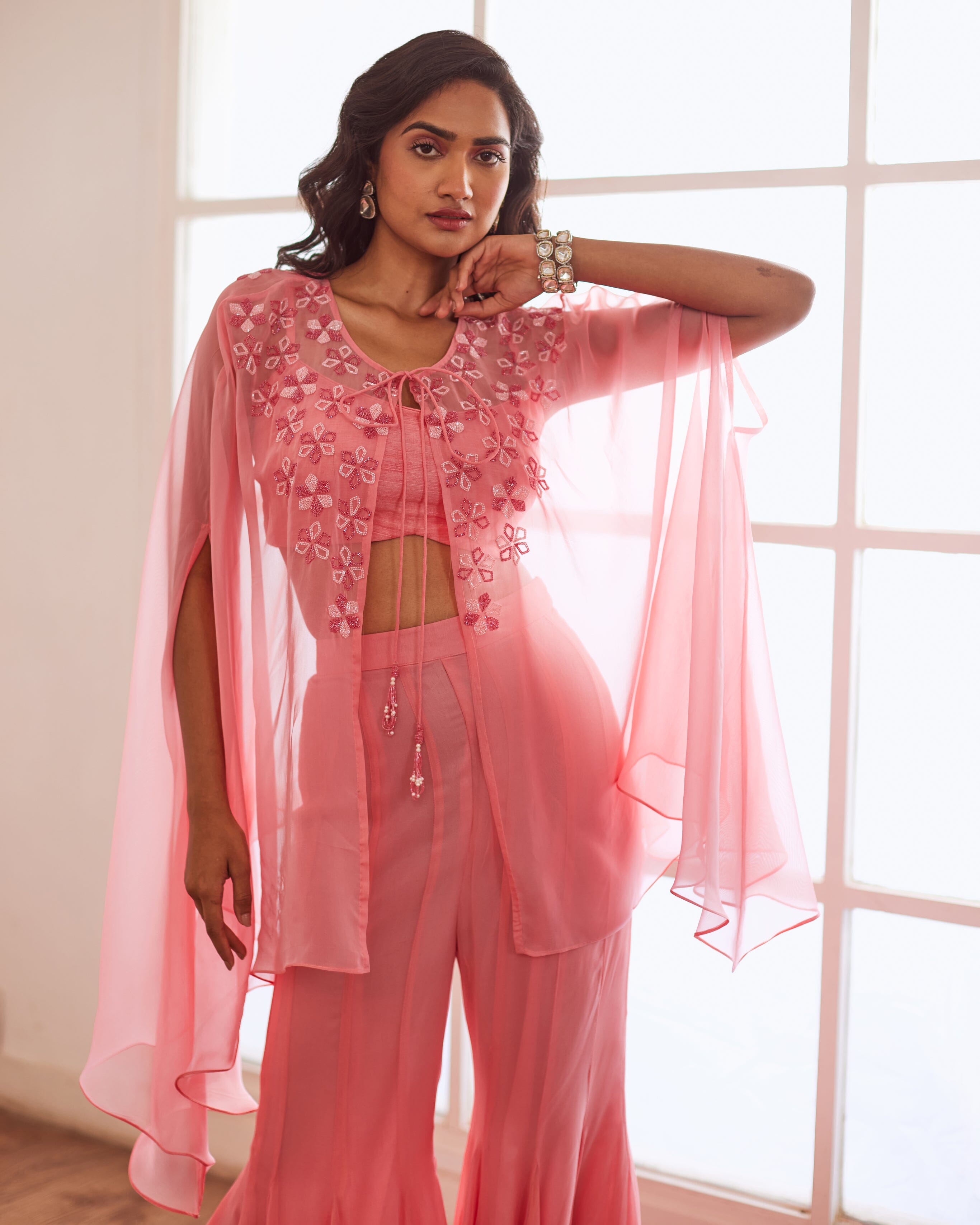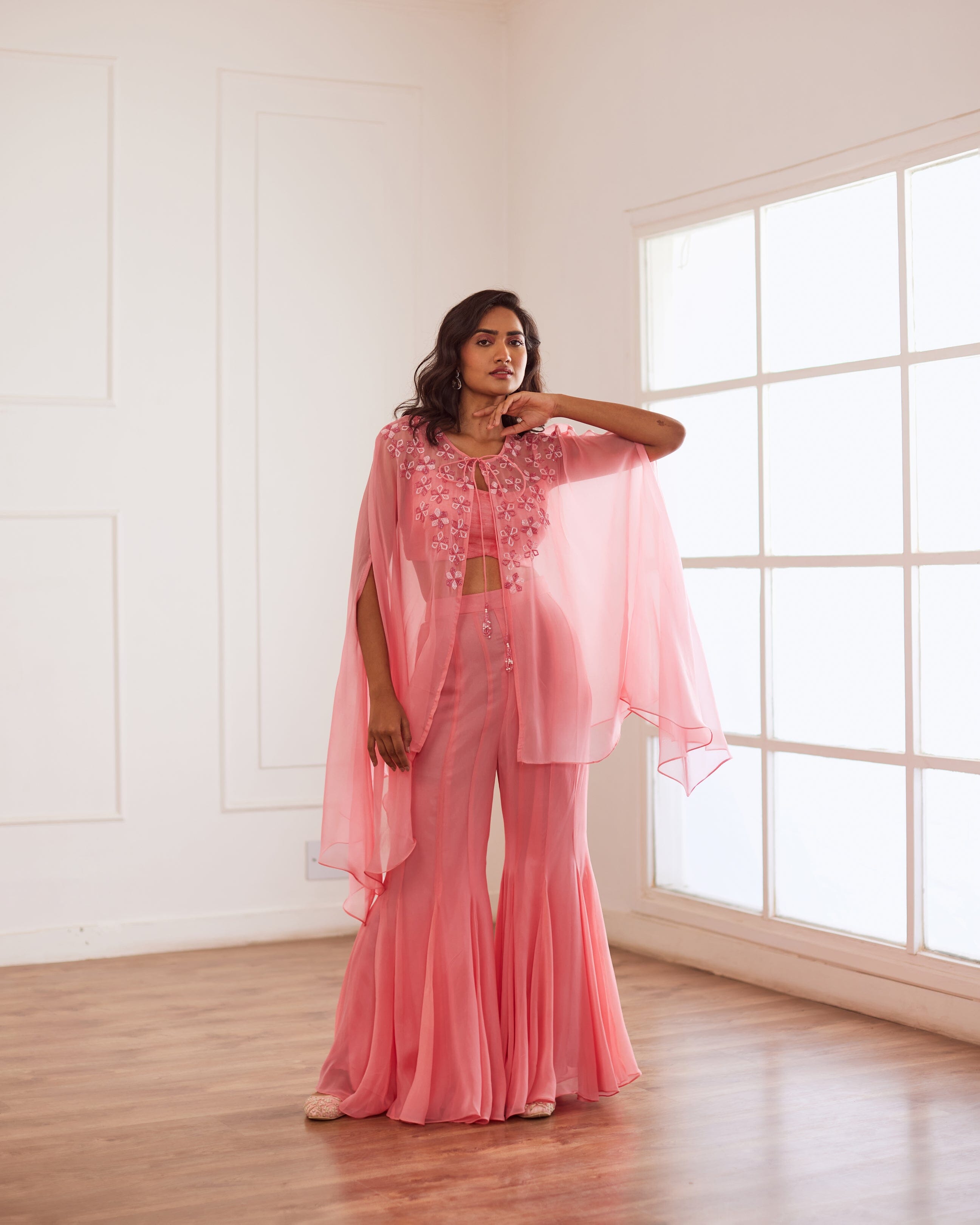 Sari Pre Drapeado Lavanda Y Verde Ombre Con Cinturón