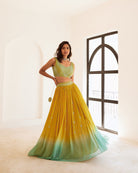 Conjunto Lehenga Ombre amarillo y azul