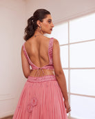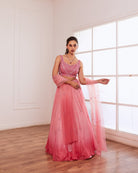 Conjunto Lehenga Ombre rosa melocotón y rosa oscuro