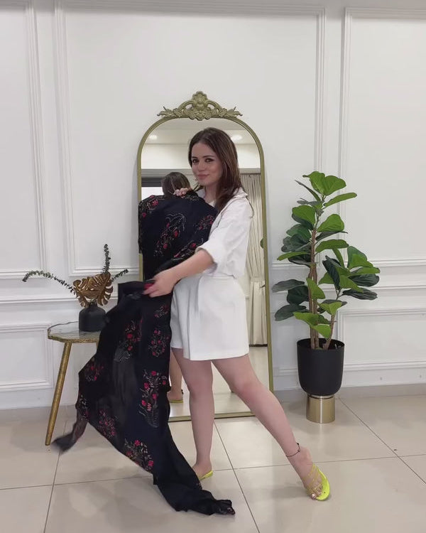 Fit : Fitted at bust and waist Blouse : back zip Saree : side zip
