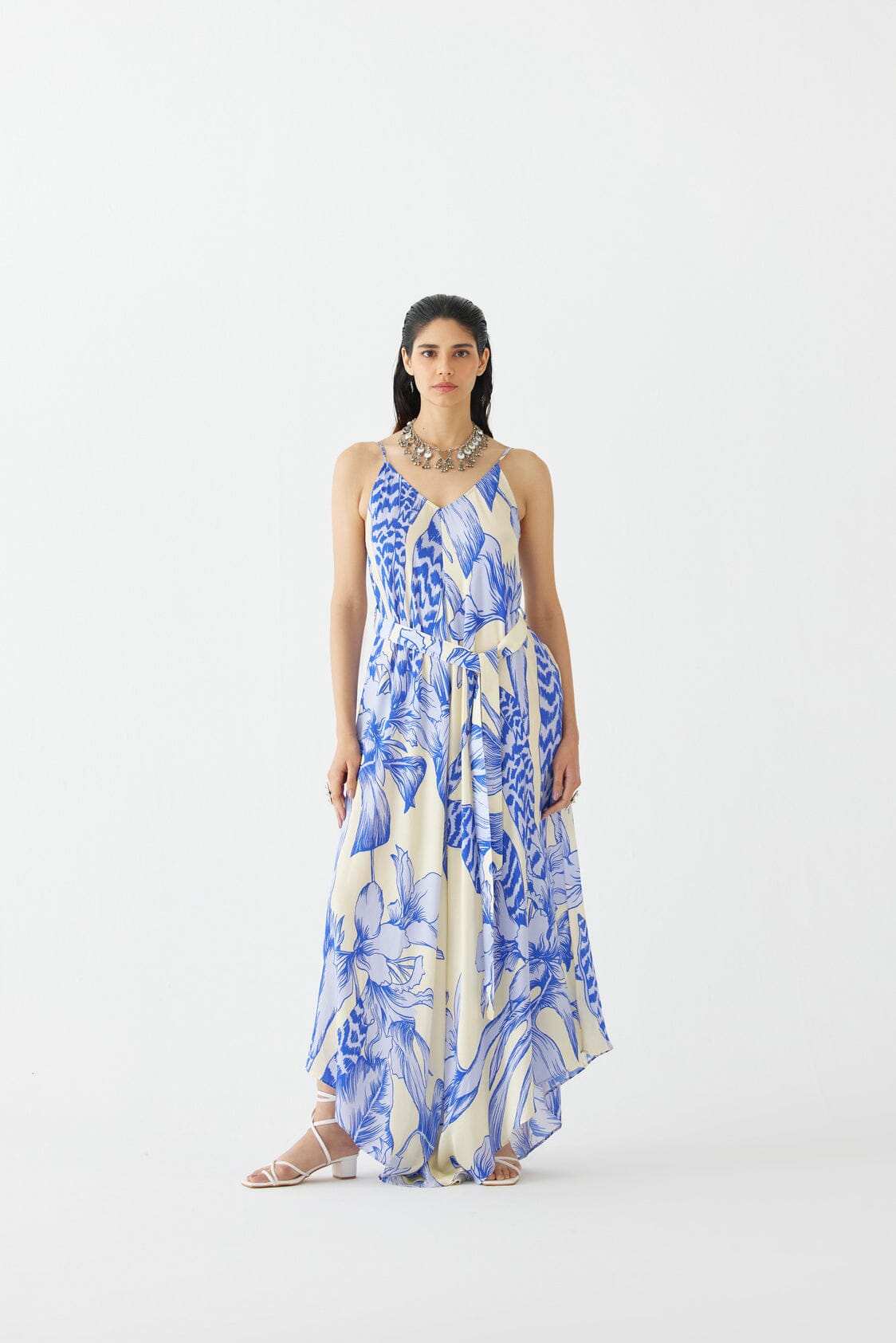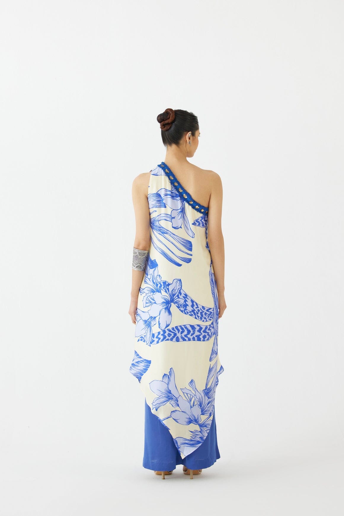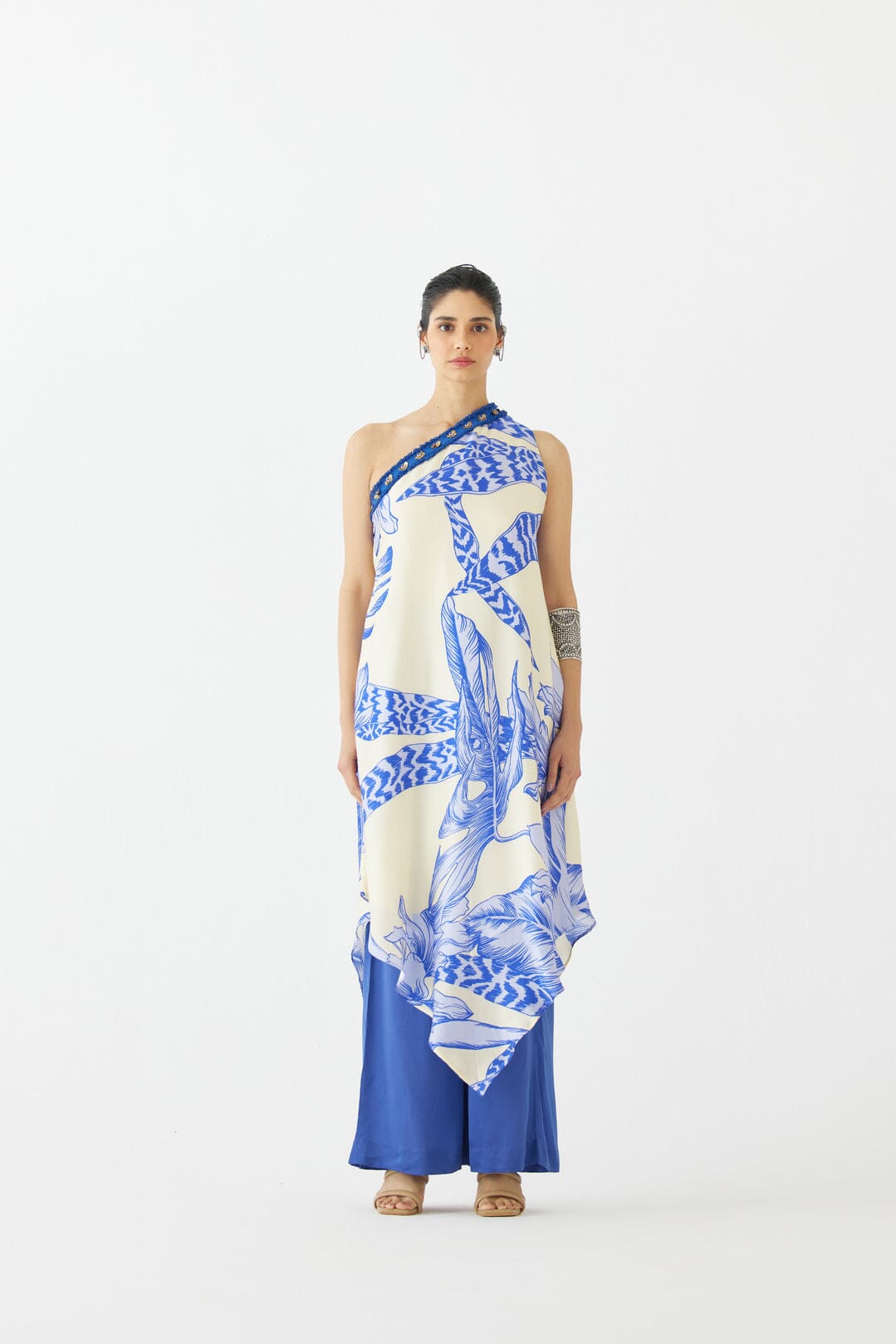 BLUE APHRODITE ONE SHOULDER KURTA & FLARED PANTS