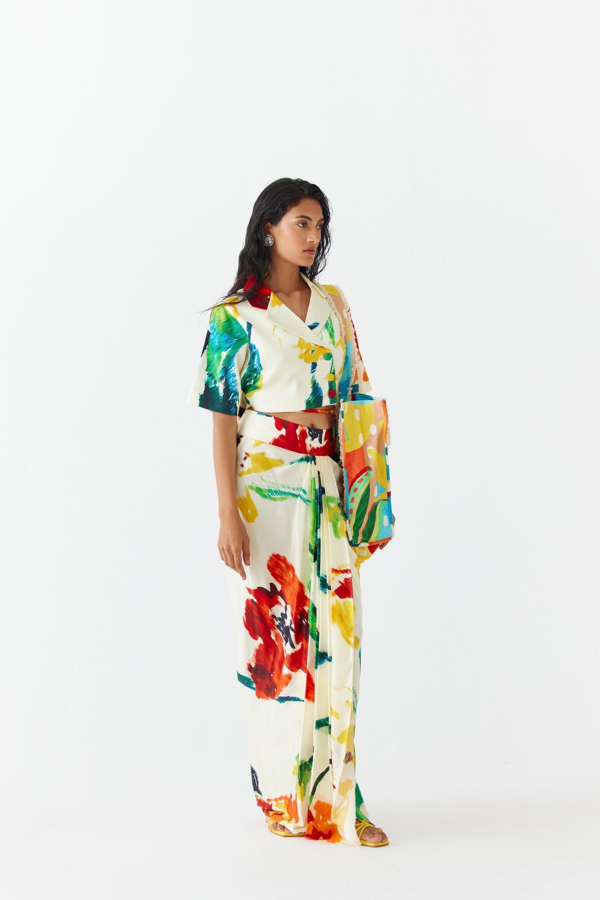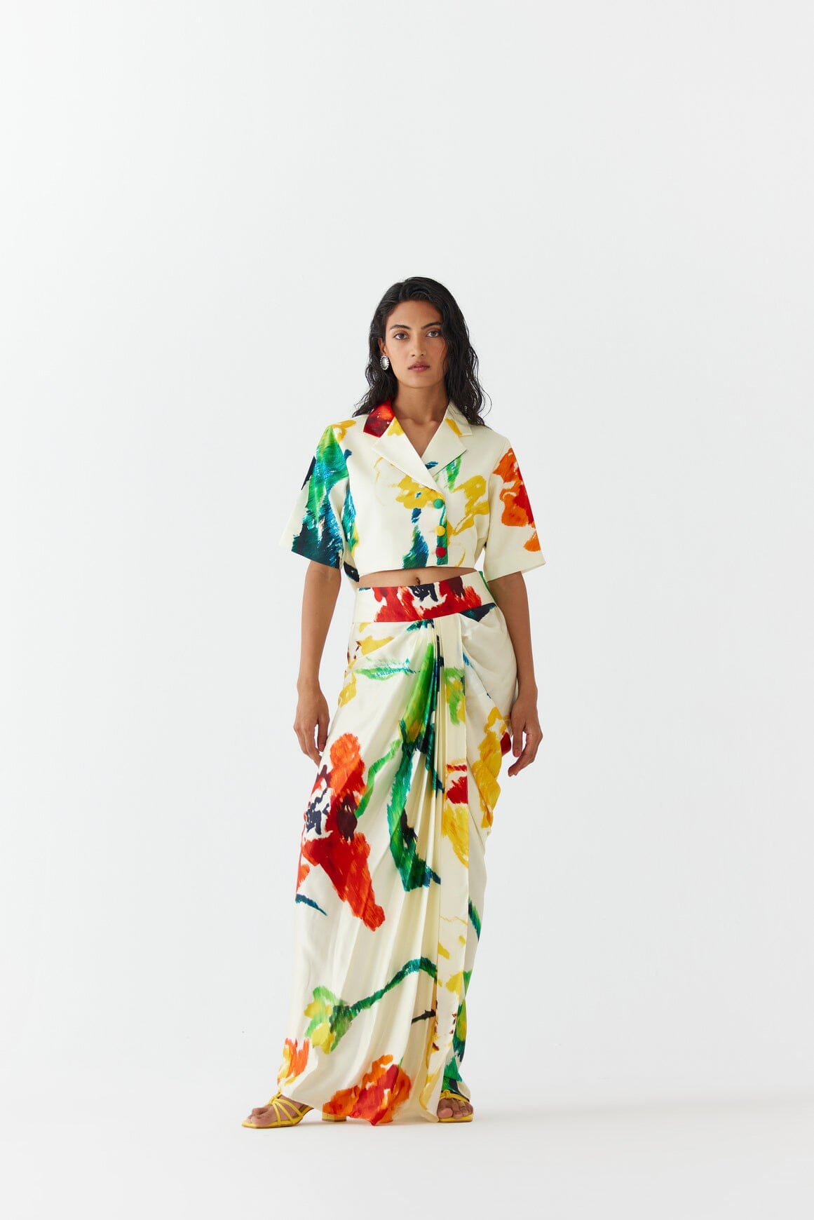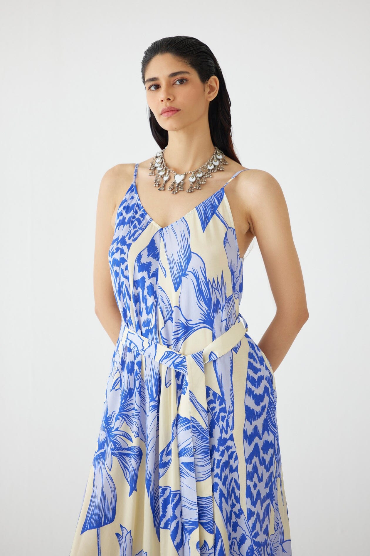 BLUE APHRODITE ONE SHOULDER KURTA & FLARED PANTS