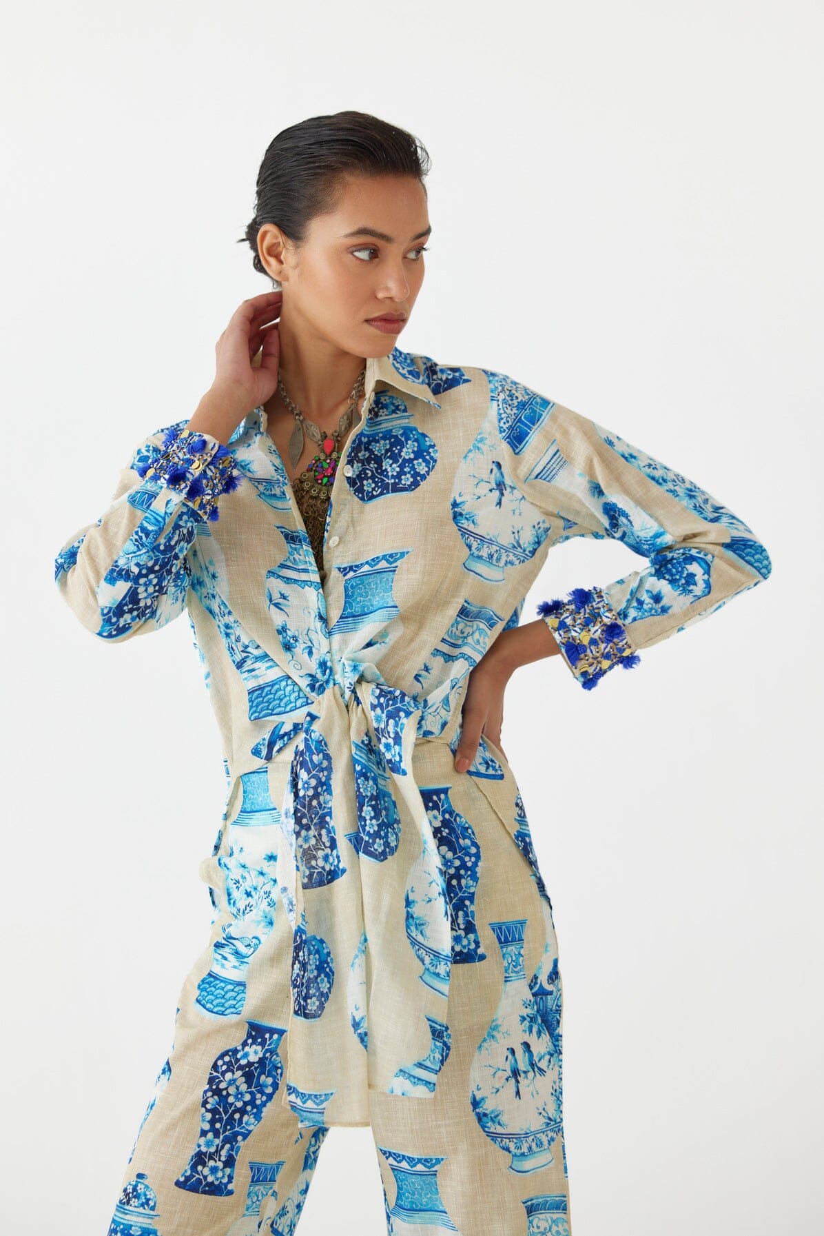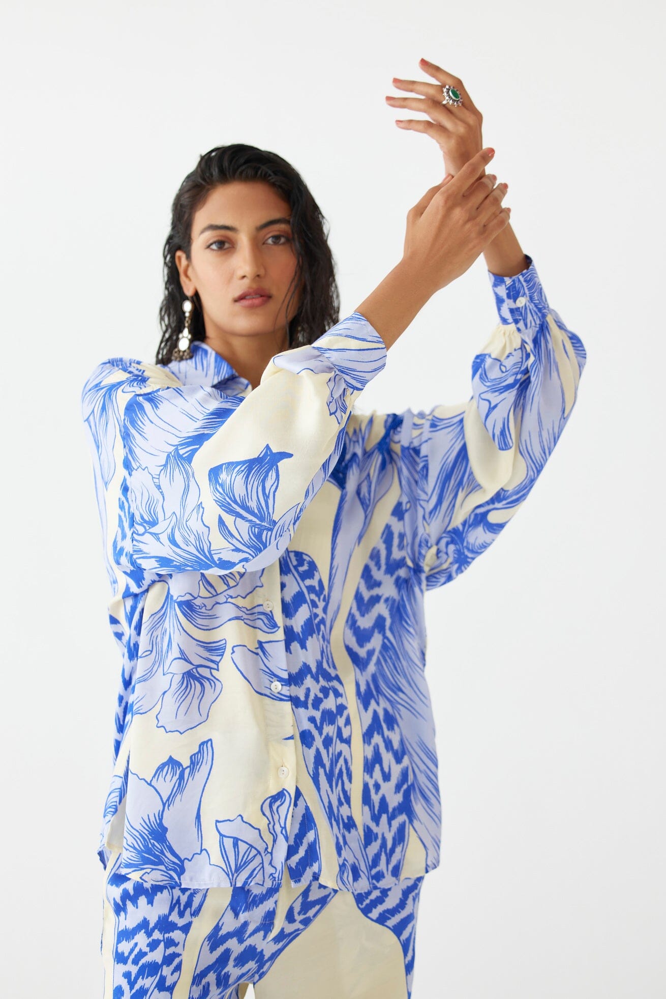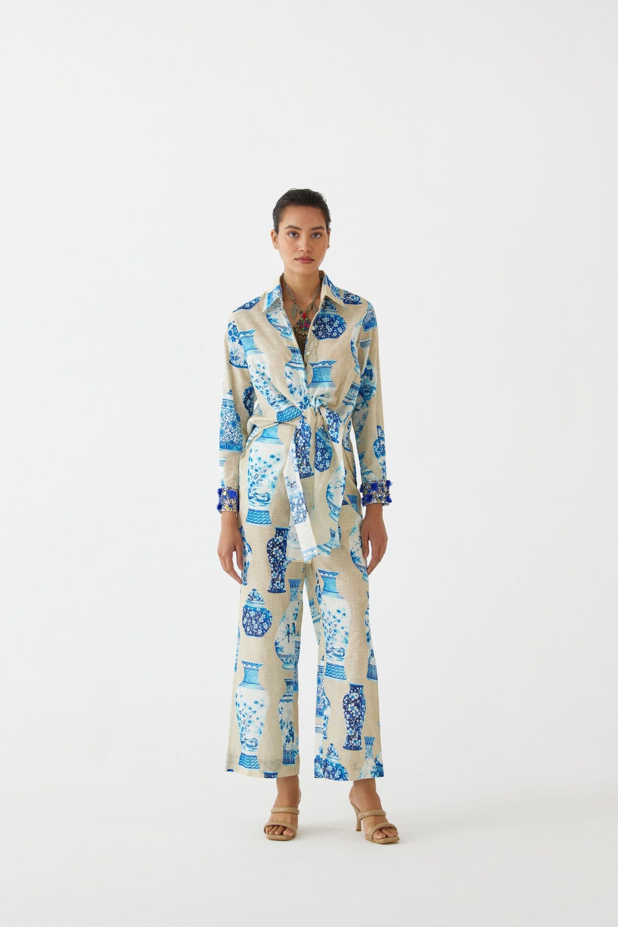 BLUE APHRODITE DRAWSTRING SHIRT & TROUSERS
