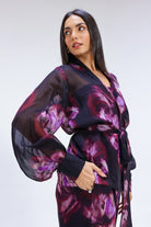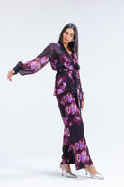 • Design: Digitally printed muted wine pattern in an exaggerated print Model
