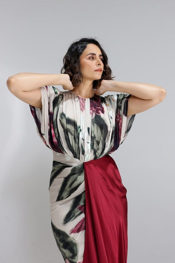 IVY GARDENI KNOT SHIRT WITH DRAPED SKIRT