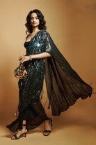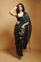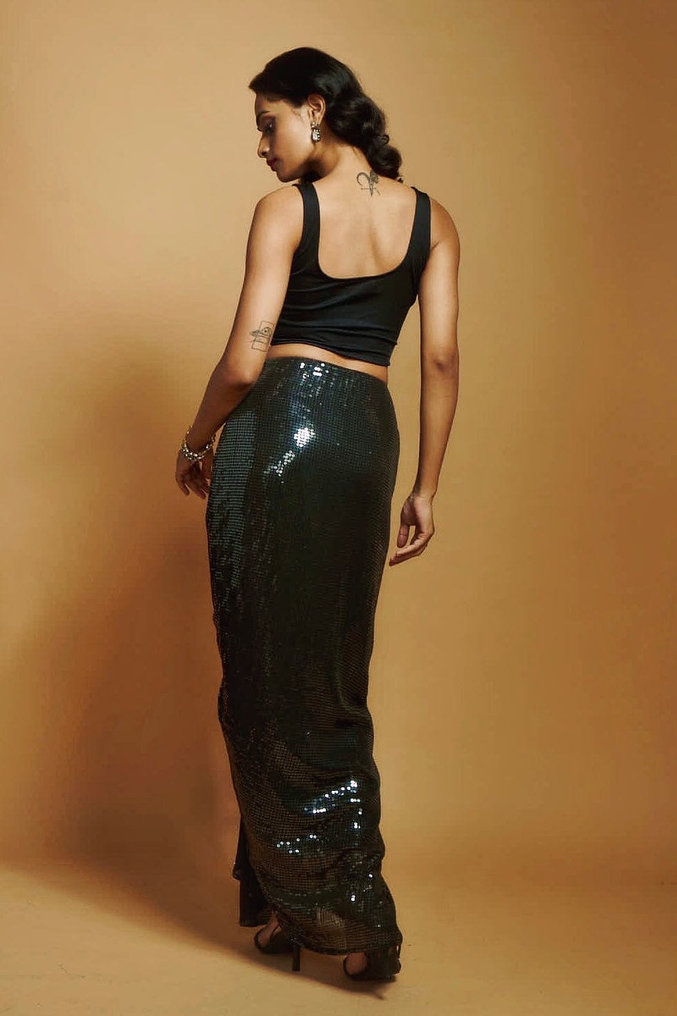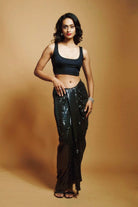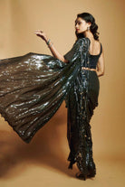 BLACK SEQUIN SKIRT WITH DETACHABLE SEQ PALLU