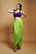 LIME GREEN SEQUIN SKIRT WITH DETACHABLE SEQ PALLU