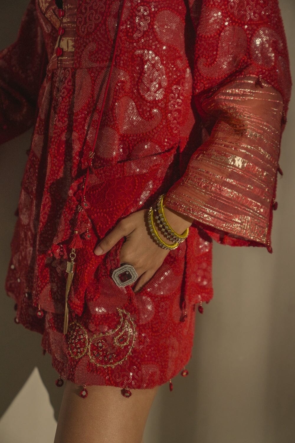 Crafted from pure cotton for ultimate comfort. Featuring an elasticated back for a perfect fit, these shorts are as versatile as they are chic. The hem is adorned with shimmering mirrors, while intricate paisley embroidery on the side adds a touch of traditional elegance. Fun to style and effortlessly fashionable, these shorts are a must-have for a bold and stylish look. Worn best with our RUBY RED CHICKANKARI TUNIC.