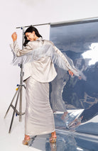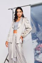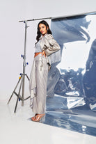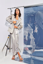 Introducing our Silver Fringe Blazer, a mesmerizing fusion of sophistication and daring style that's destined to captivate attention .Crafted from premium silver fabric that shimmers with every movement, this blazer exudes a modern yet timeless allure. The sleek silhouette boasts a tailored fit that flatters the figure. The true essence of this blazer lies in its captivating fringe detailing.Versatile and chic, this blazer transitions effortlessly from day to night. Pair the blazer with neutral-colored bottoms to allow it to be the focal point of the outfit. You can also opt for long, dangling earrings or hoops that complement the silver tones.Elevate your wardrobe with our Silver Fringe Blazer, a statement piece that effortlessly combines sophistication, modernity, and a touch of dramatic allure.