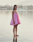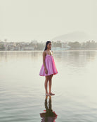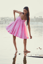 Khadi Cotton Mini Dress in Pink Concealed zip closure at the centre back.