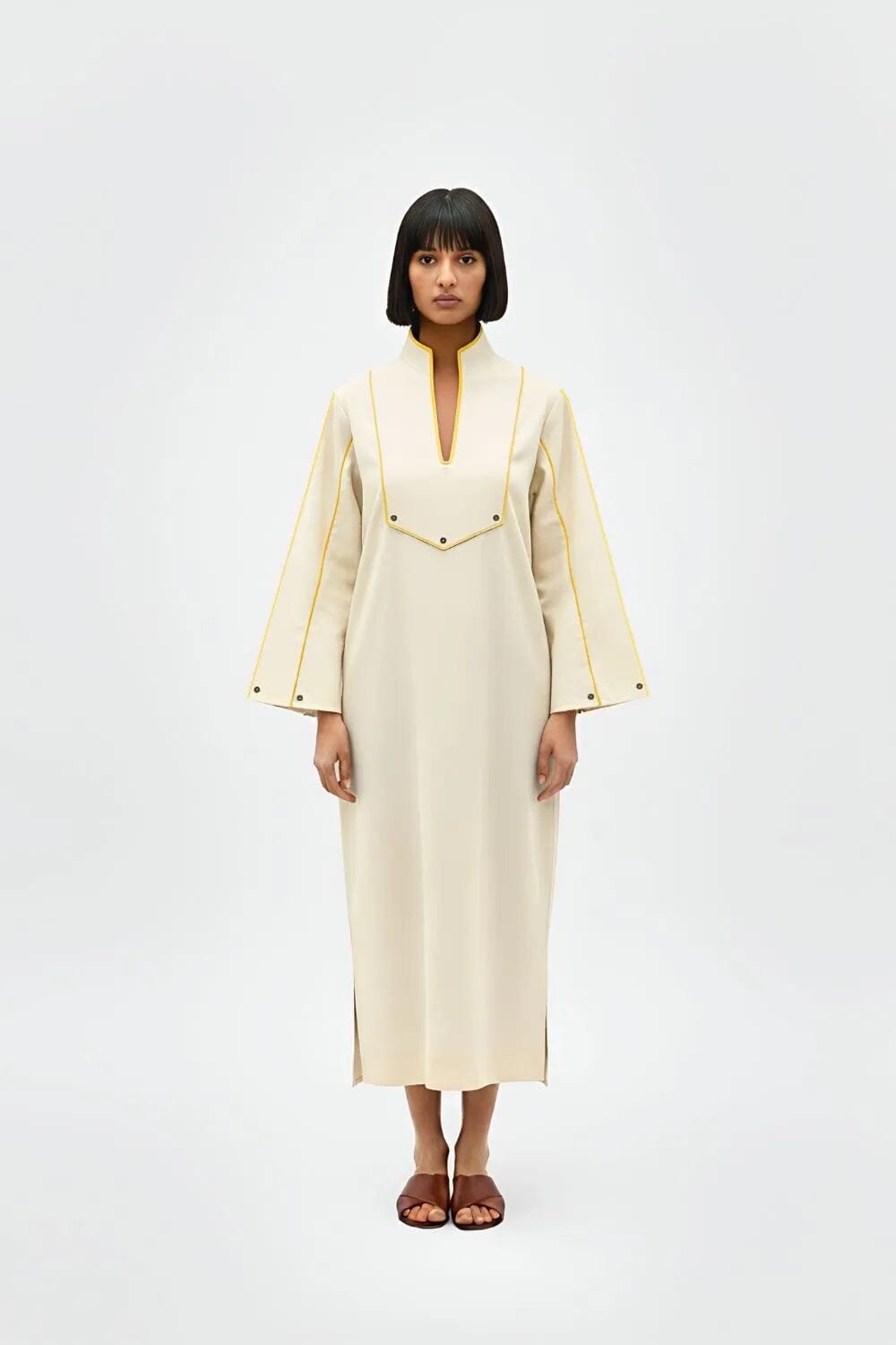 Asparagus Green-Tuscan Red Beaded Collar Maxi Dress