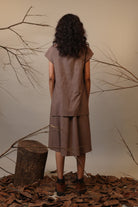 Applique style colour block dress in layers giving skirt and top like feel in one piece. Ribbed colour details on the neckline and side pockets.