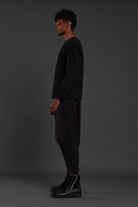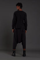 Designed for comfort and style, these Black Drop Crotch Pants elevate your fashion game. The overlap button fastening adds a sleek touch and the drop crotch design allows for unrestricted movement. Perfect for any occasion, these pants are a versatile addition to your wardrobe.