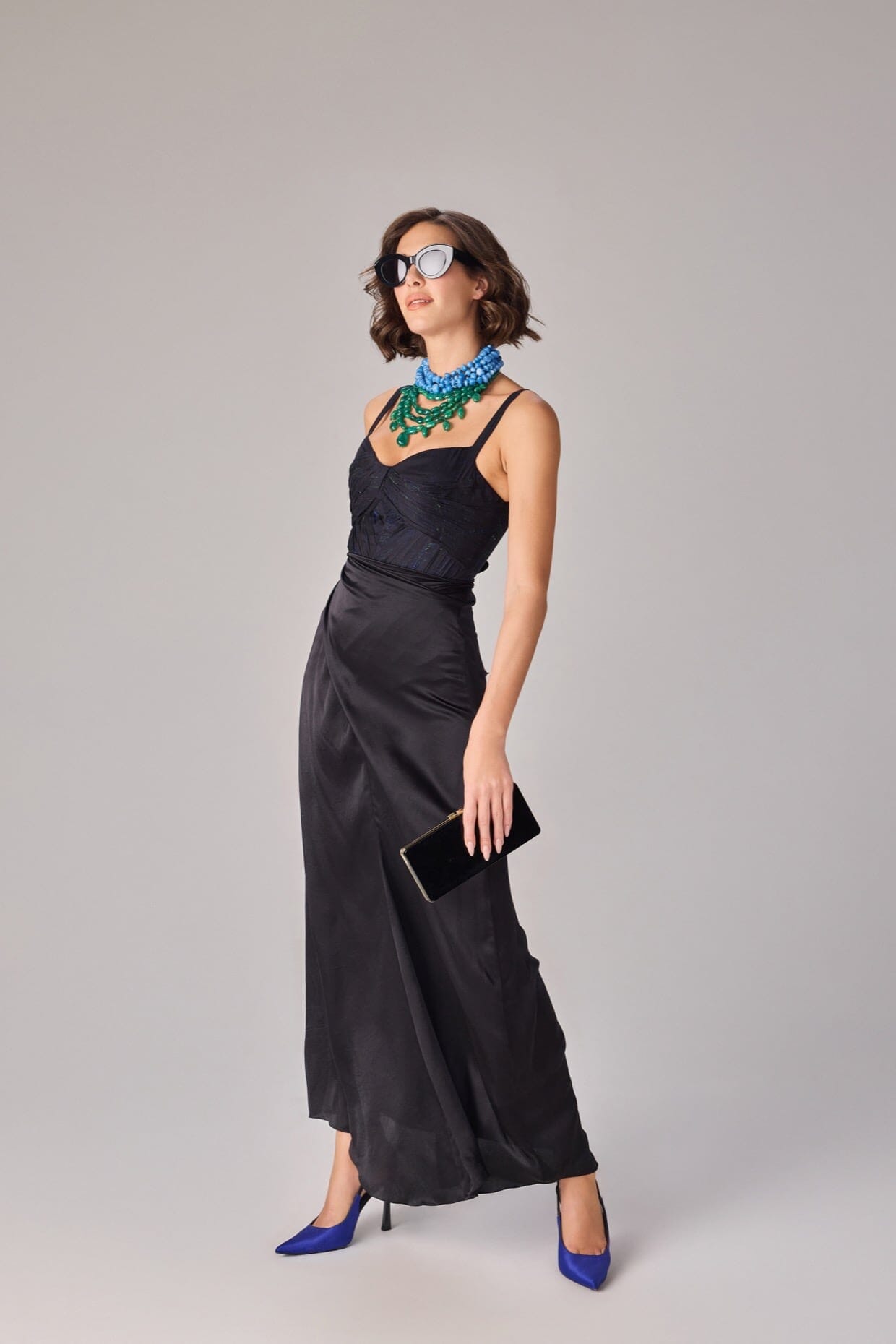High Waist, Asymmetric Maxi Wrap Skirt With Pinch And Fold Detailing