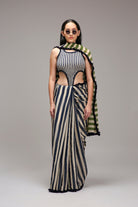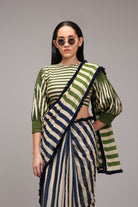 Egg-Shell Blue Green Dual Striped Saree