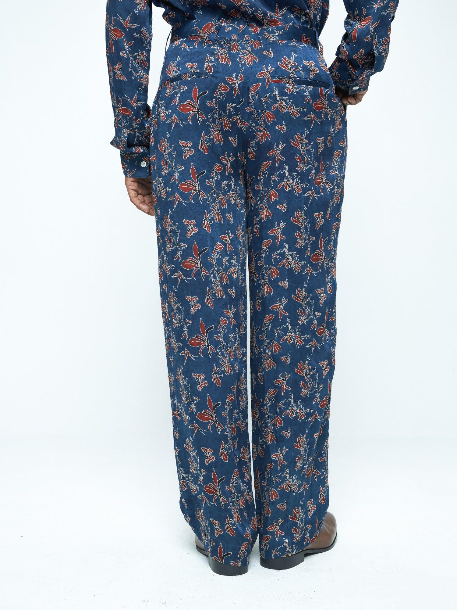 Full-length trousers featuring the Flutter garden print. Designed with double pleats at the waist and a tapered leg, they strike the perfect balance between structure and ease — a refined staple for luxe occasions.