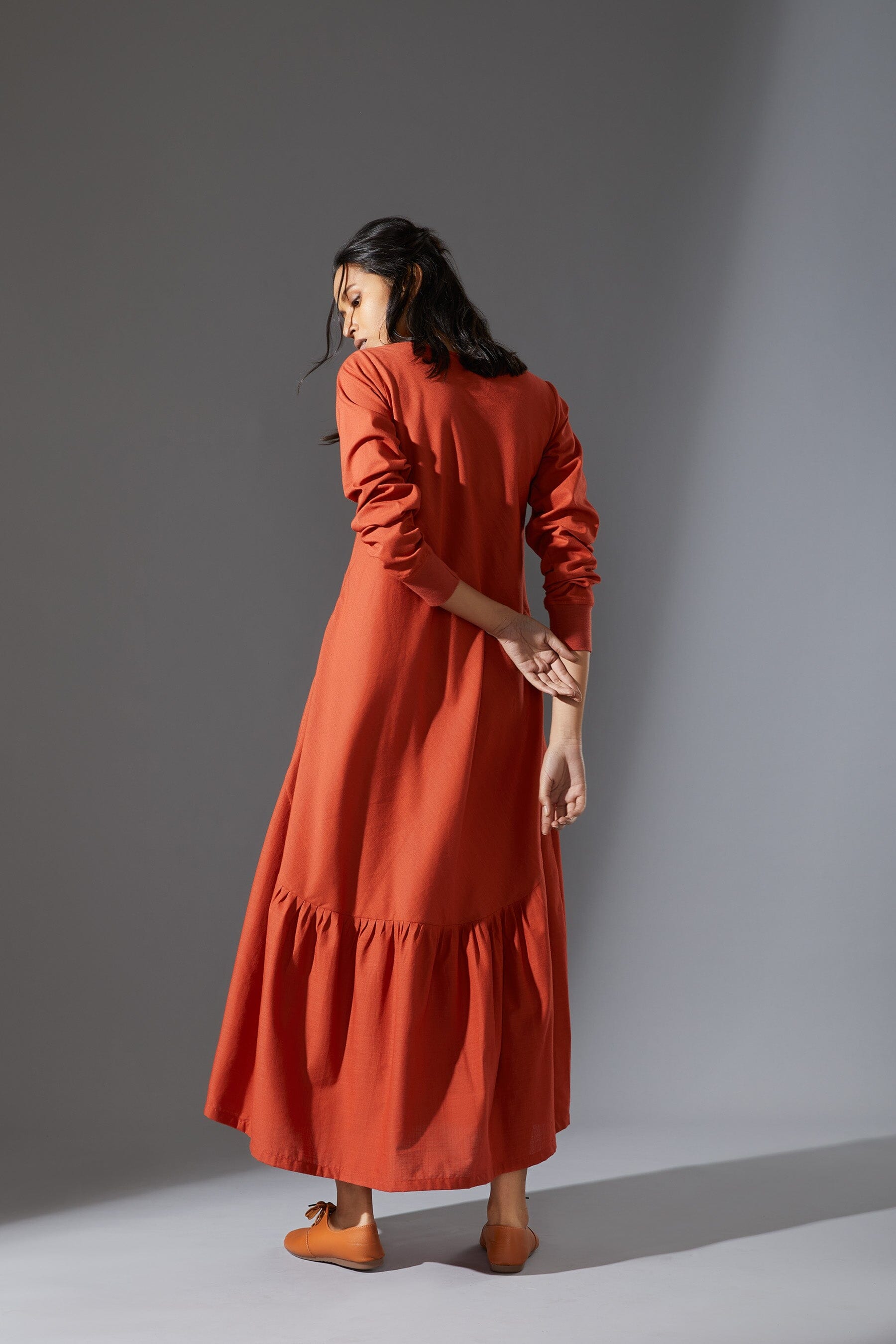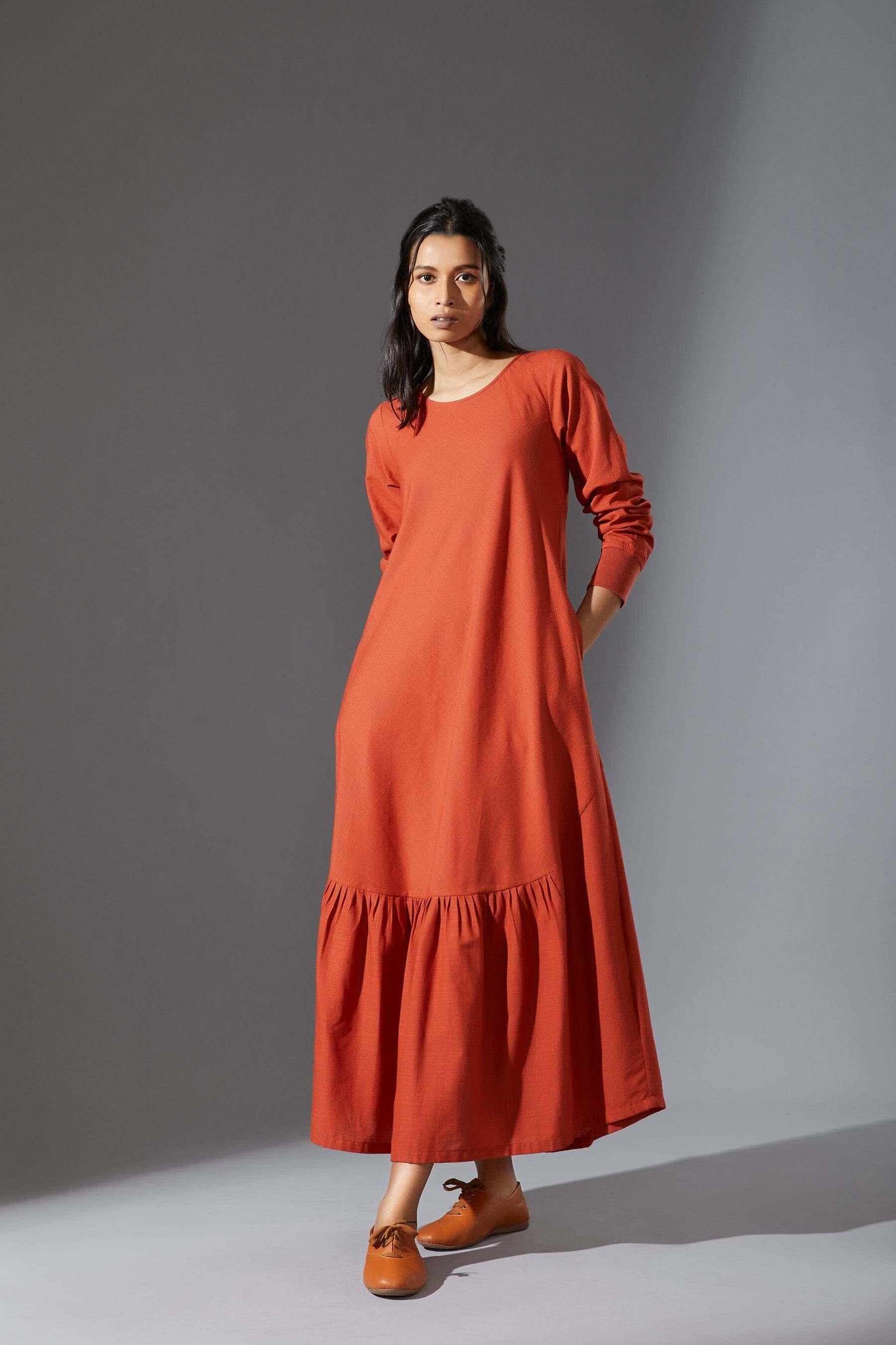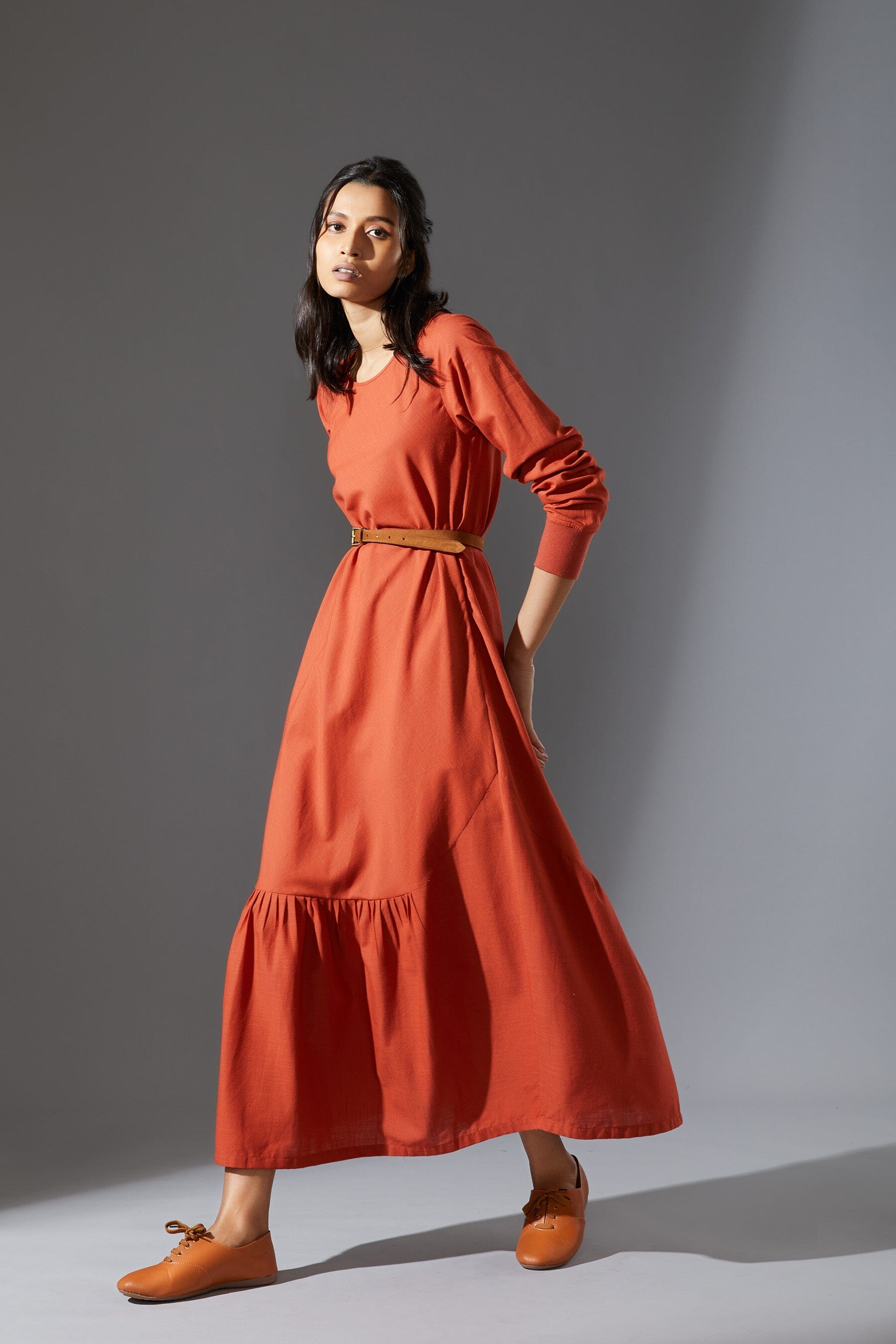 Un hermoso vestido recto confeccionado con algodón flameado tejido a mano. Con un corte al bies, este vestido se adapta perfectamente al cuerpo; además, puedes combinarlo con un cinturón, una bufanda o un bonito escote largo de color marrón tostado.
