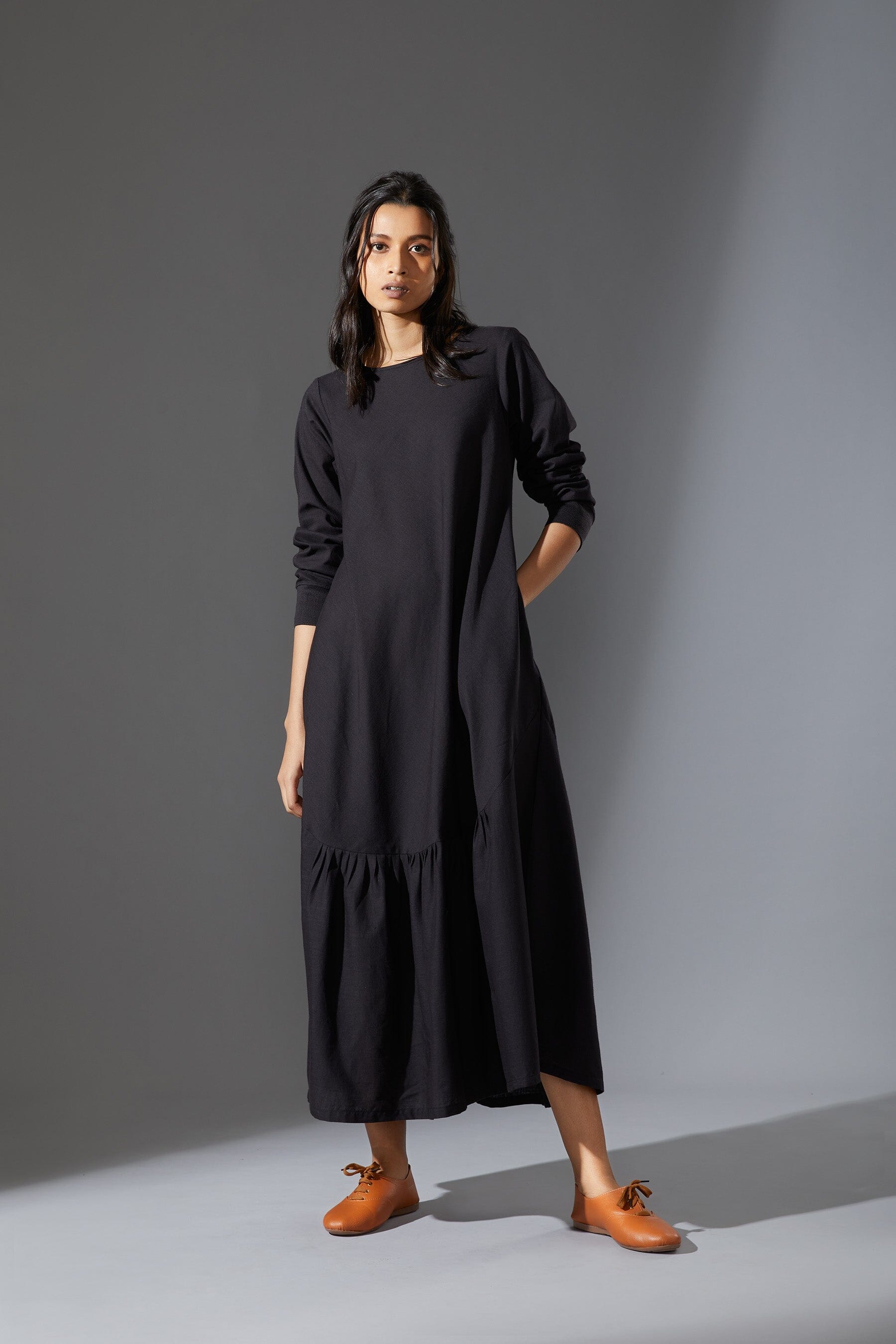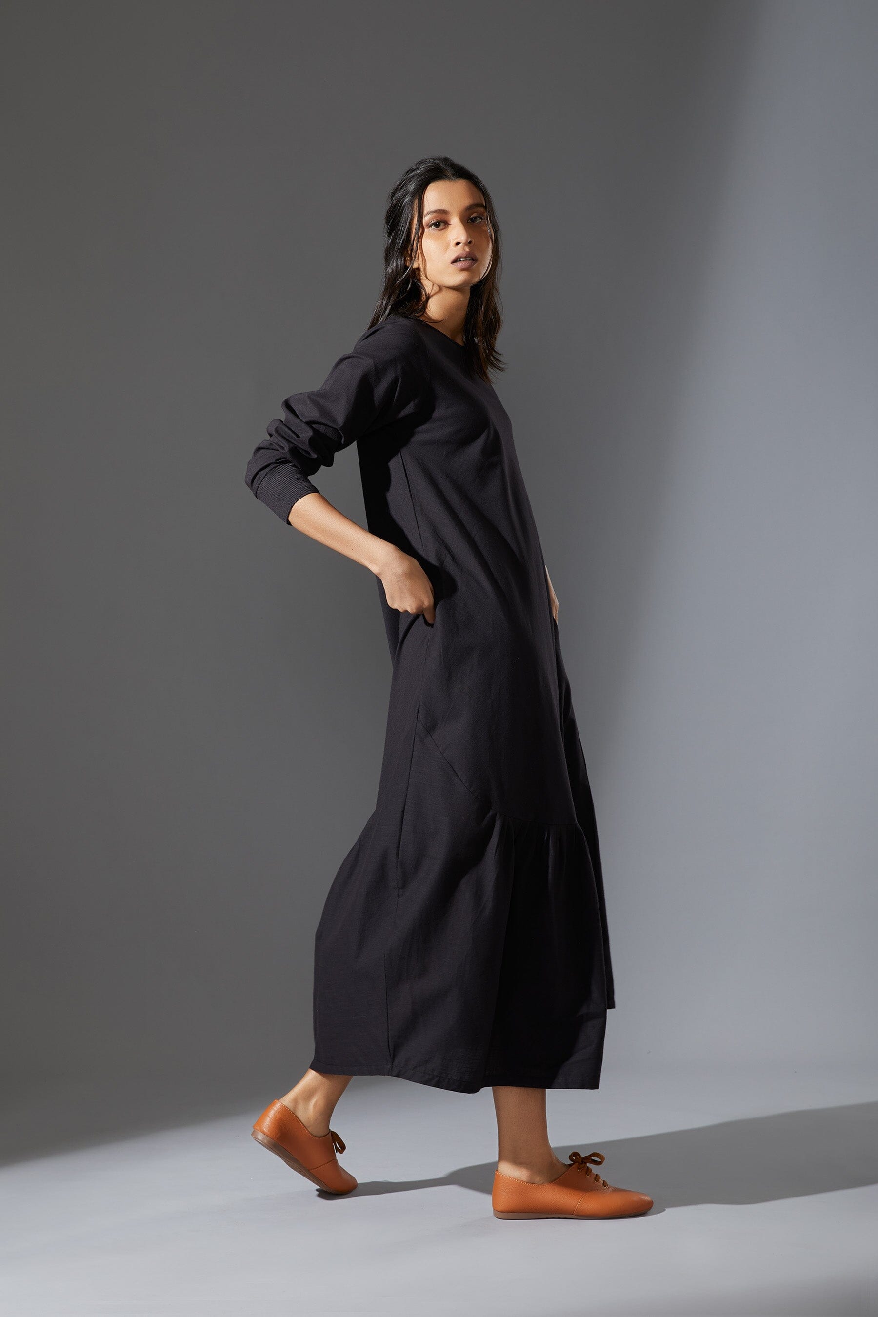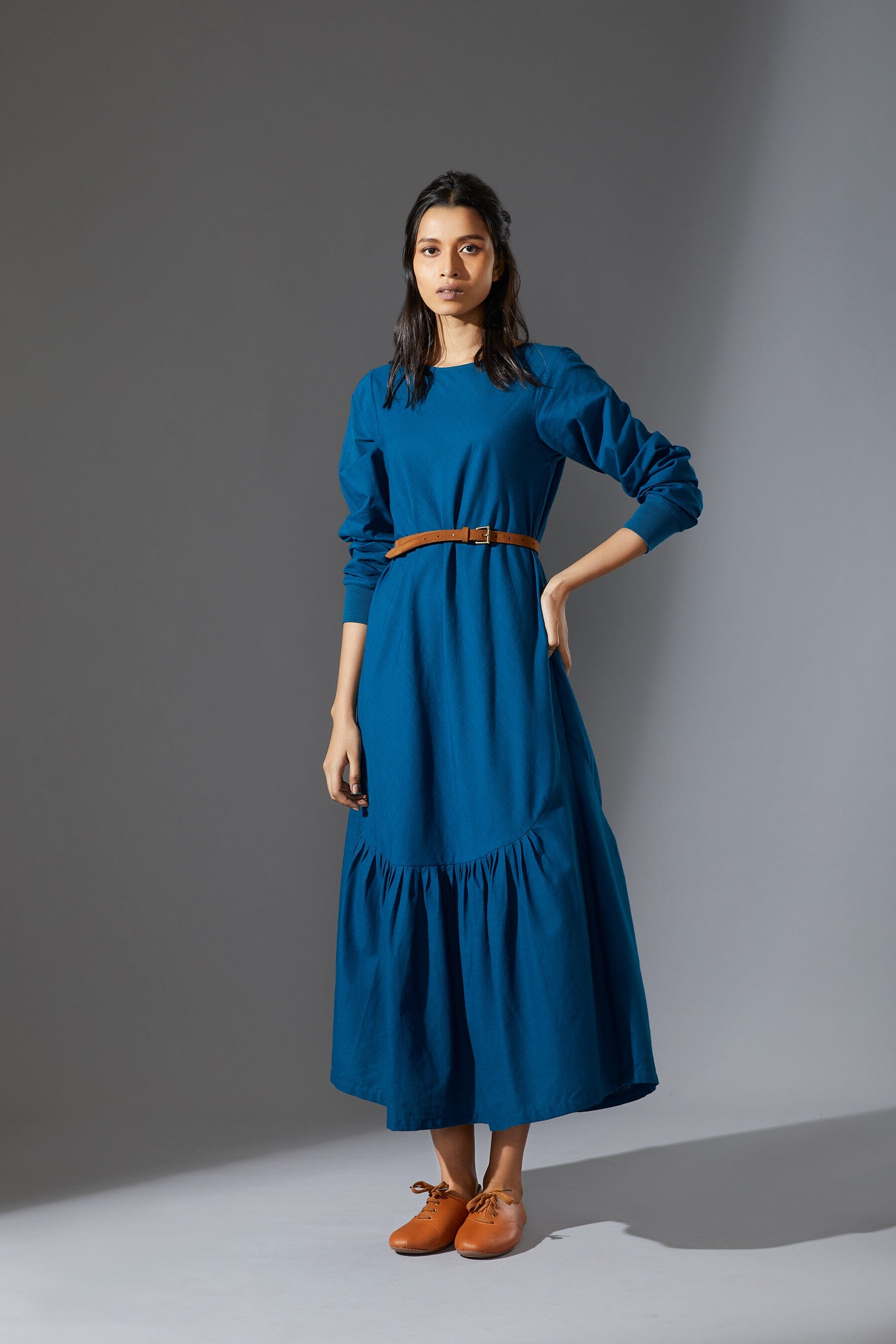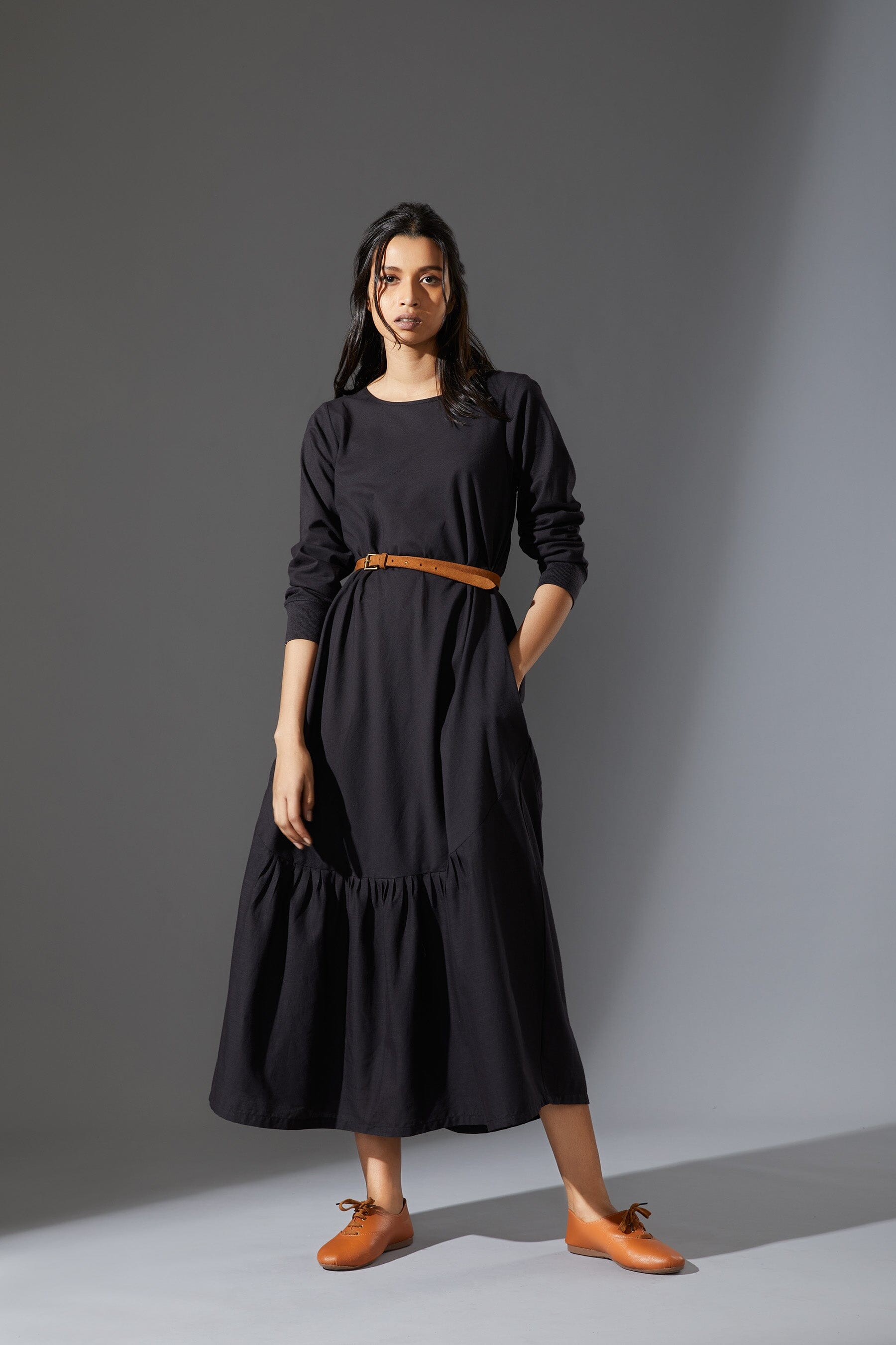 Un hermoso vestido recto confeccionado con algodón flameado tejido a mano. Con un corte al bies, este vestido se adapta perfectamente al cuerpo; además, puedes combinarlo con un cinturón, una bufanda o un bonito escote largo de color marrón tostado.