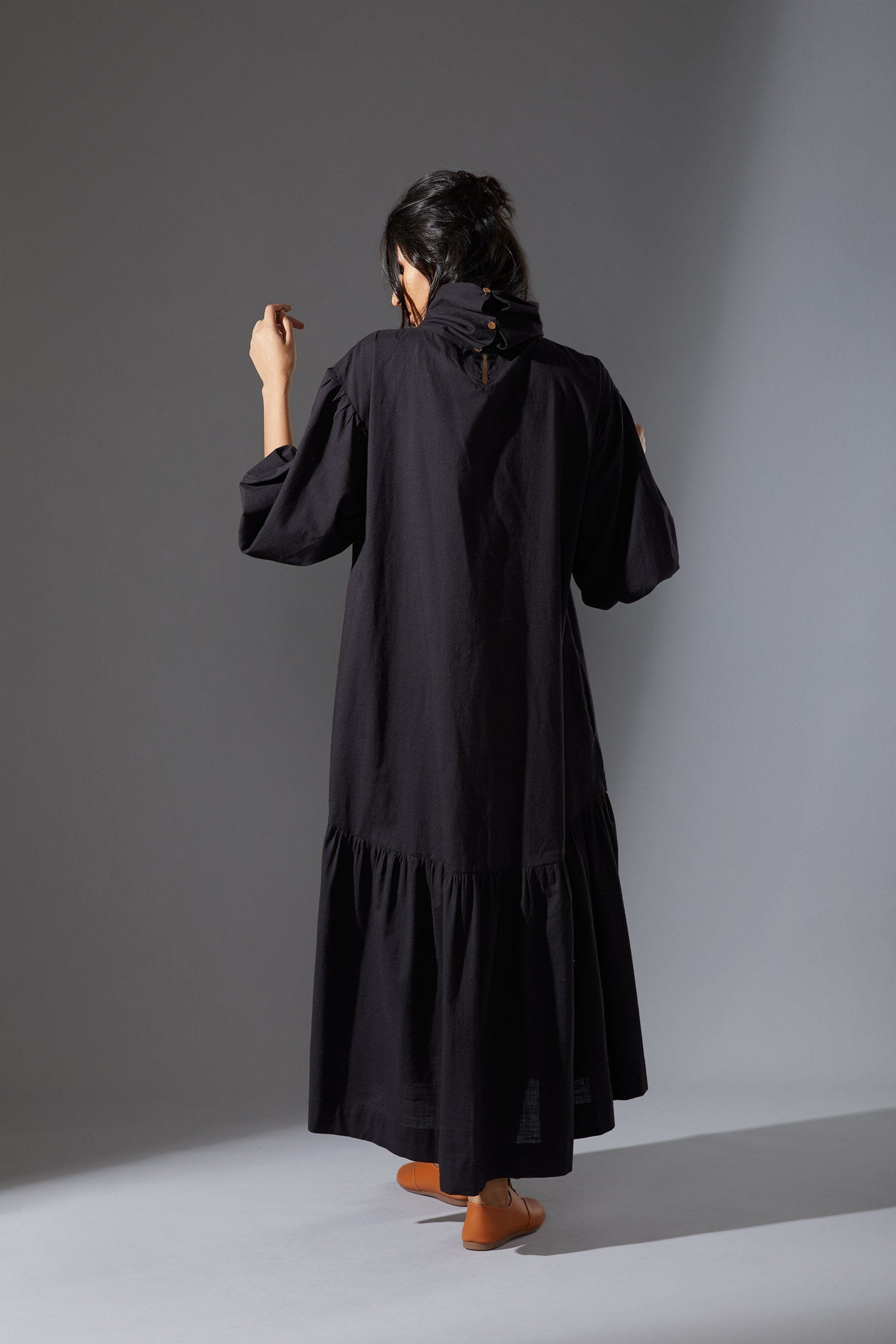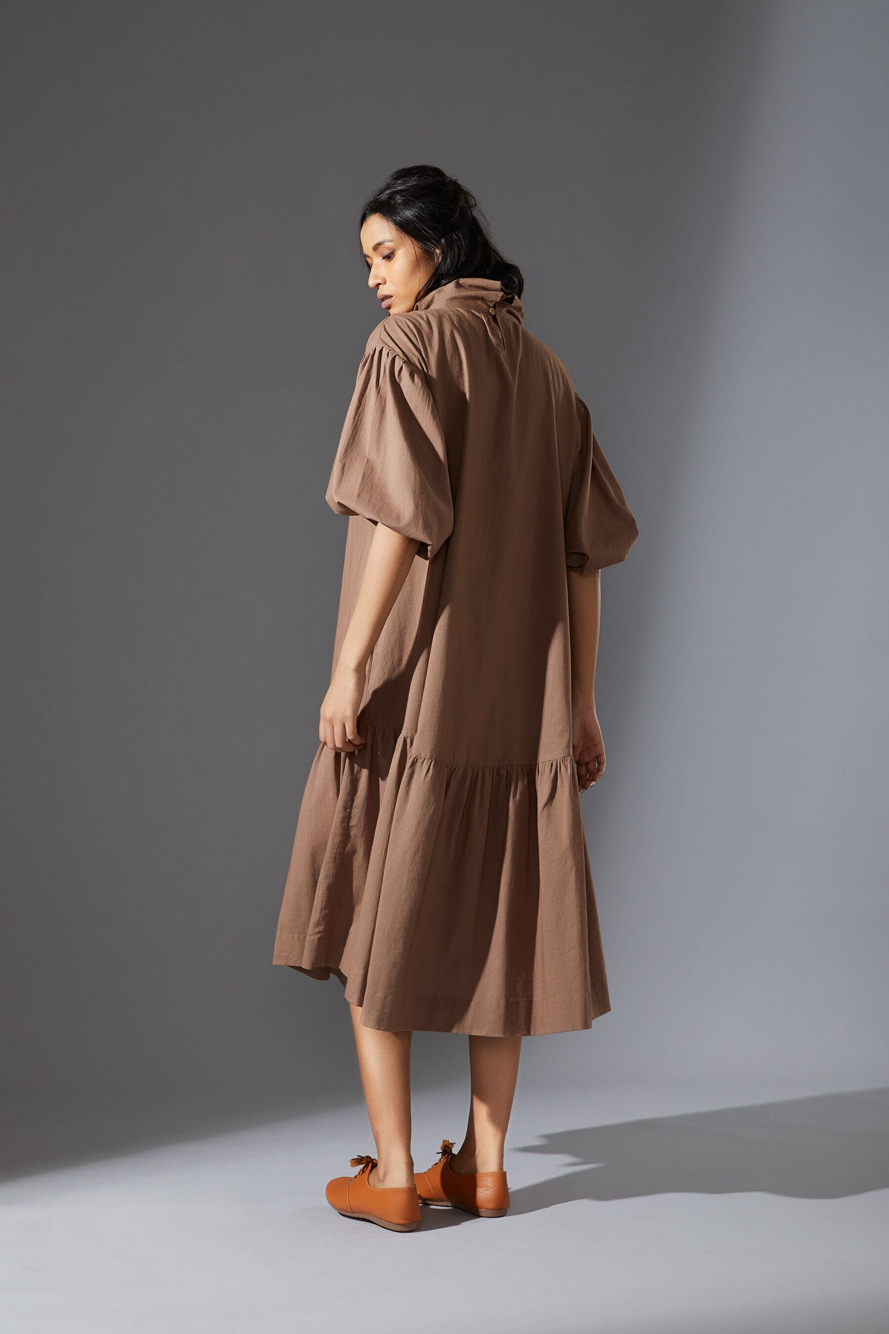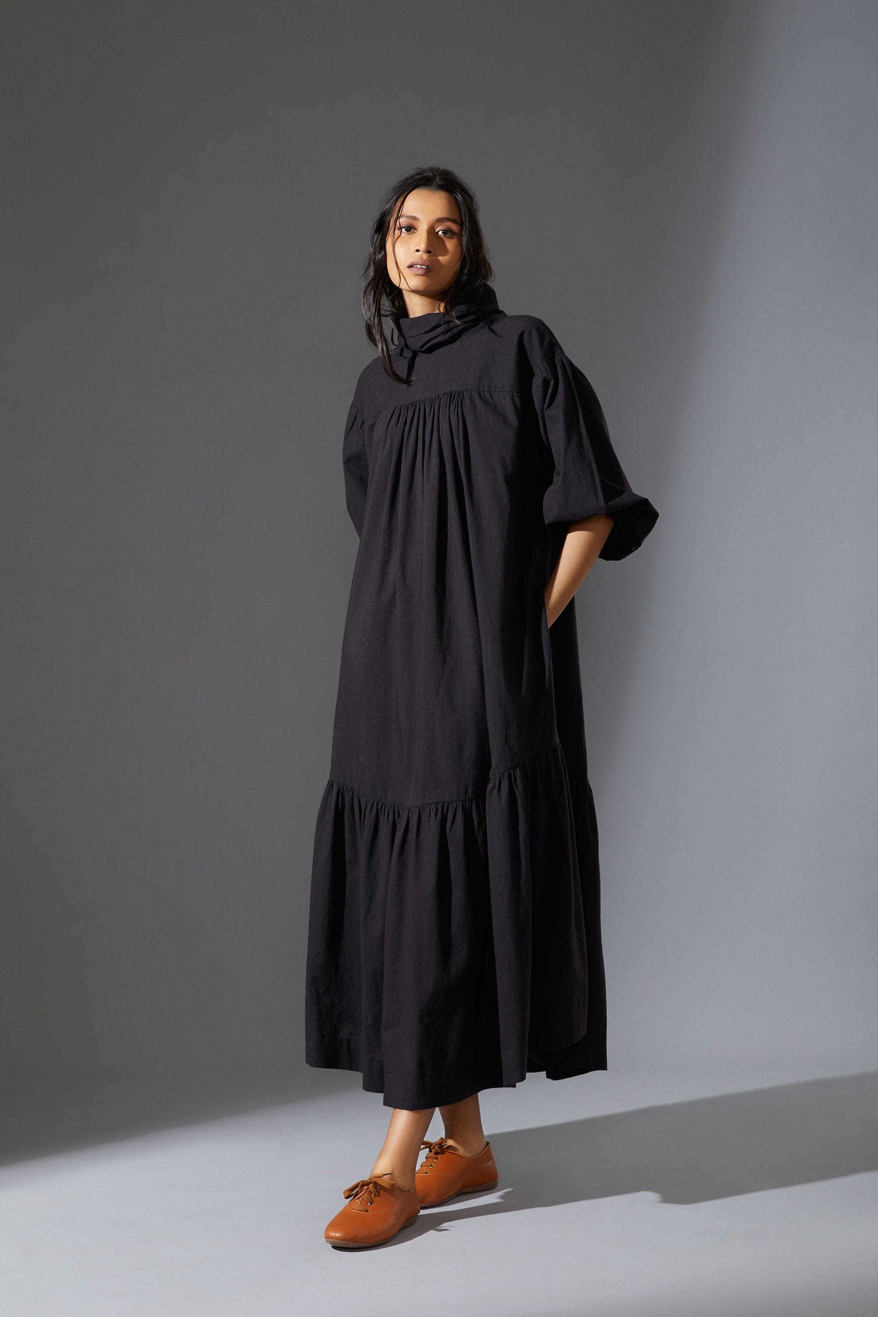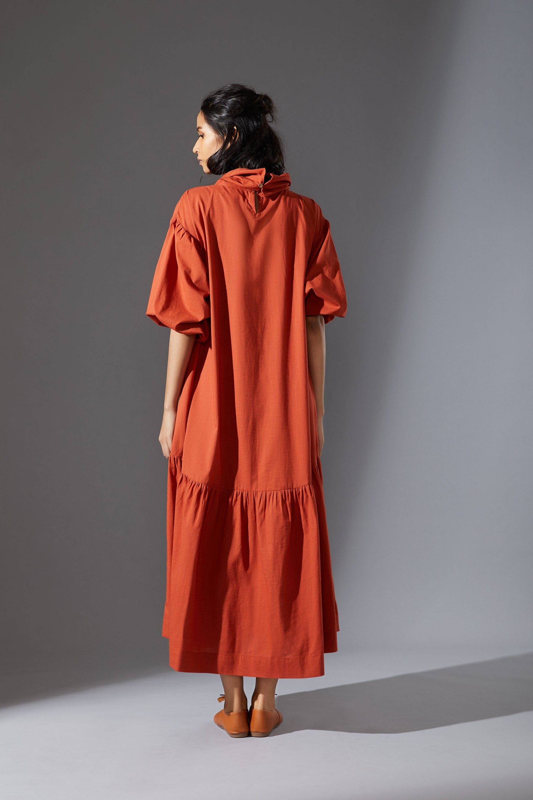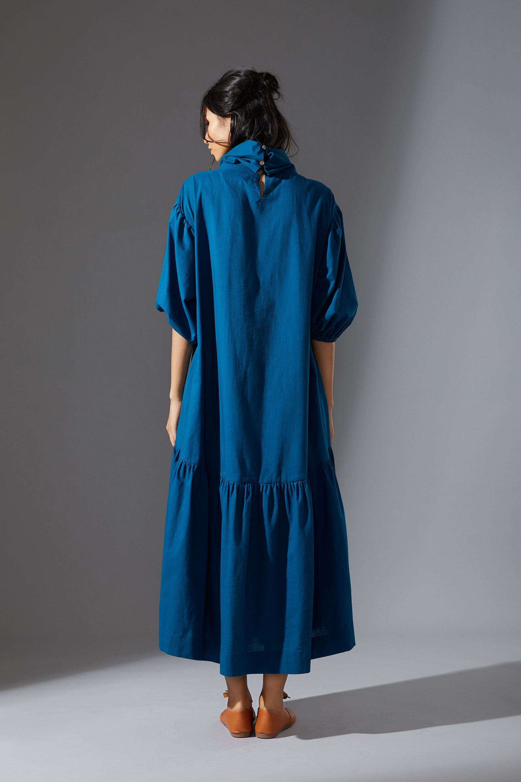 Este vestido divertido y elegante está confeccionado con una lujosa tela flameada de algodón tejida a mano. Tiene bonitas mangas tipo blusón, cuello alto y un cinturón ajustable para definir la forma holgada. Dale estilo al tuyo con sandalias con cordones y un bolso tote.