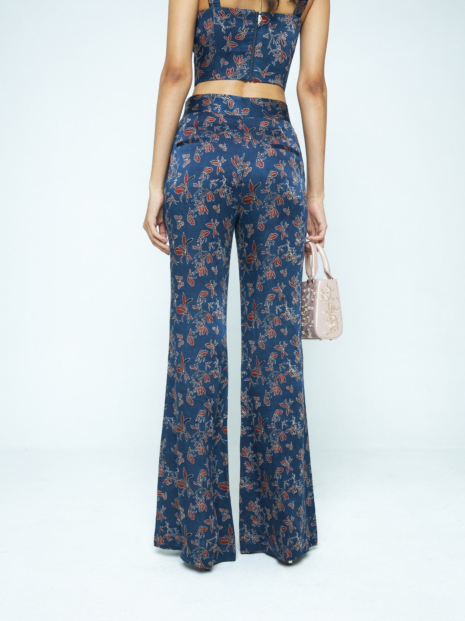 Full-length flared pants in modal featuring the Fluttergarden print. Designed with a smooth mid-rise waistband and a soft flare through the leg, they create an elongated, flattering silhouette — elevated yet easy.