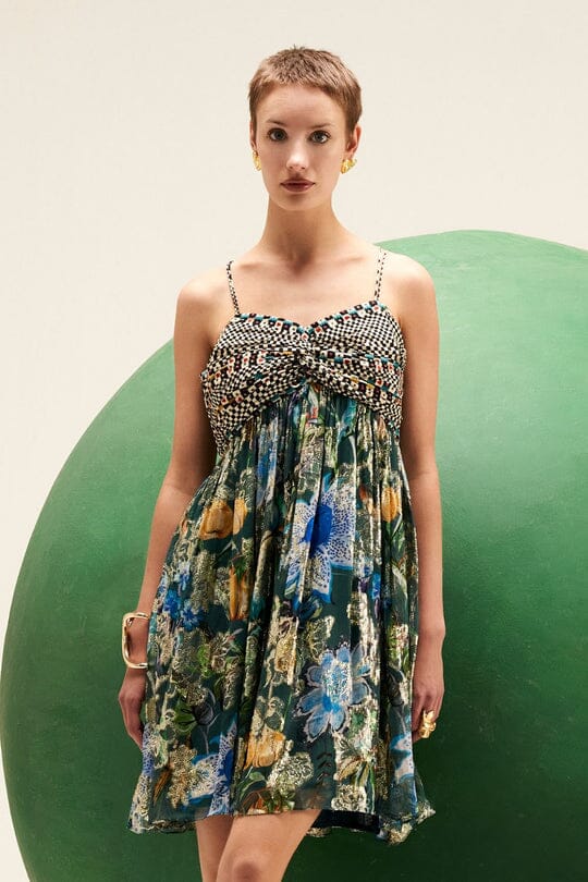 Floral Printed lurex Mini Dress.
