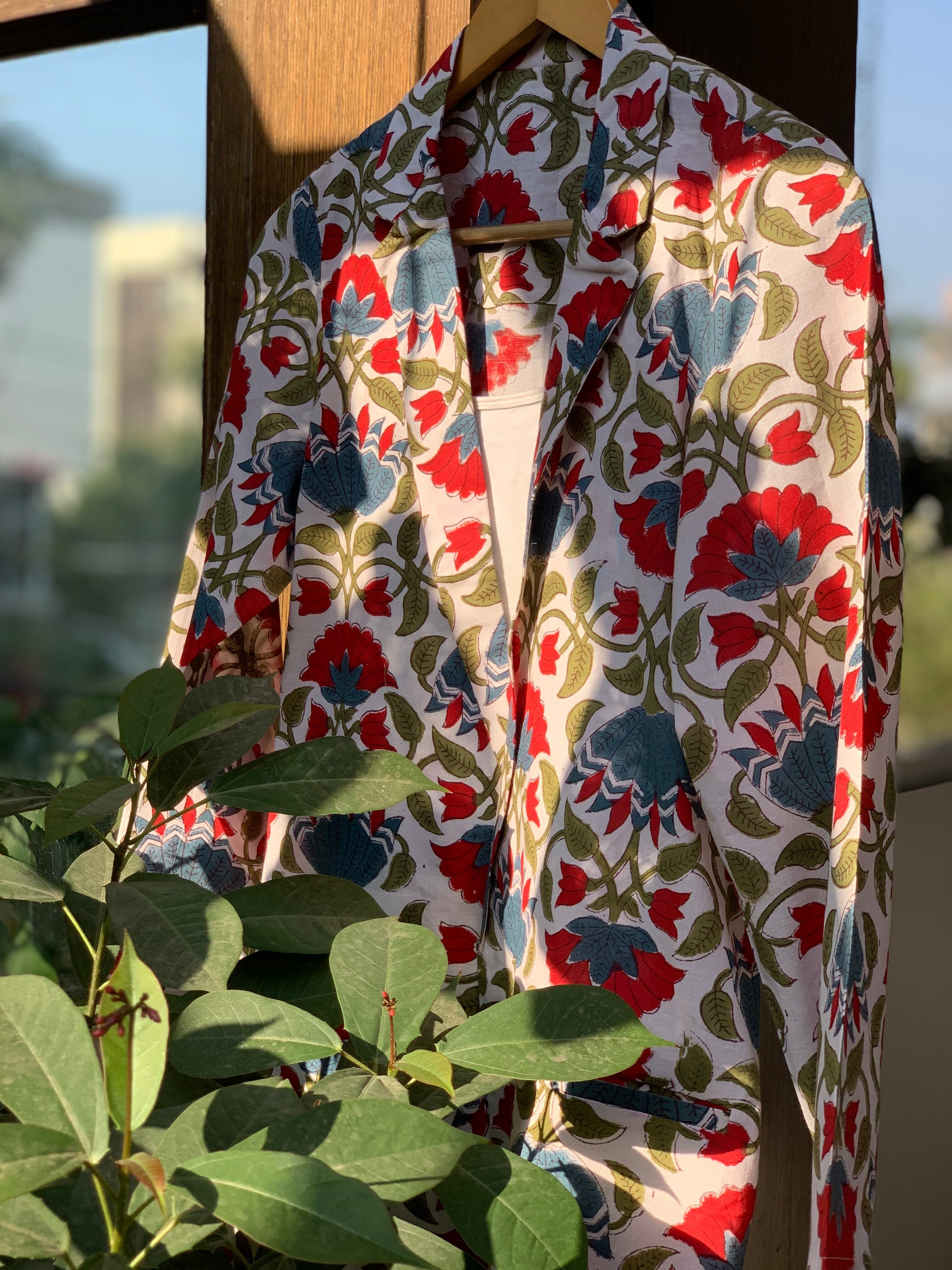 Conjunto de pantalón y blazer floral blanco