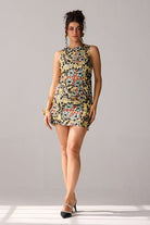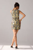 A floral printed mini dress for all your fancy days, adorned with shimmering sequins and delicate net detailing.