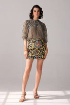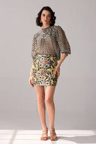 Your classic mini skirt made a whole lot prettier adorned with a lovely floral print, all-over sequins and delicate net detailing.