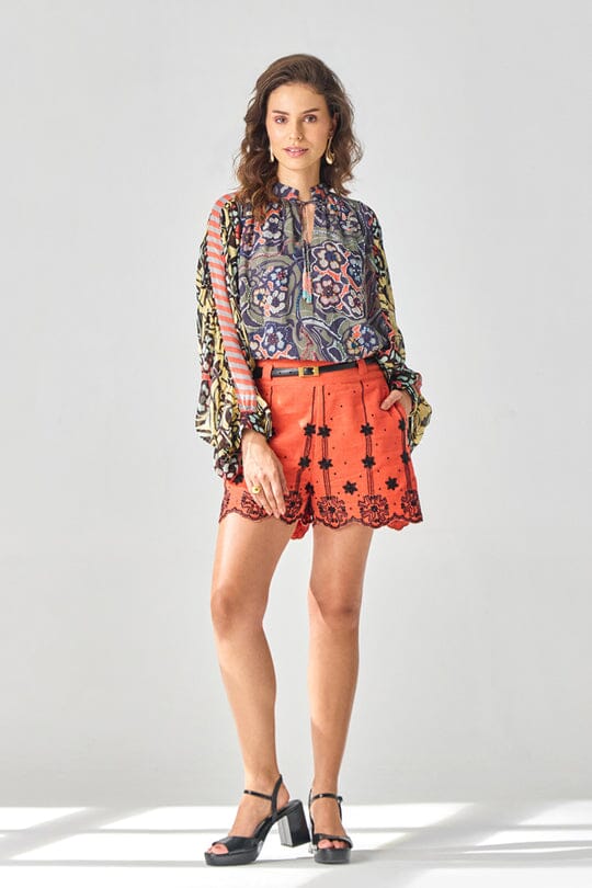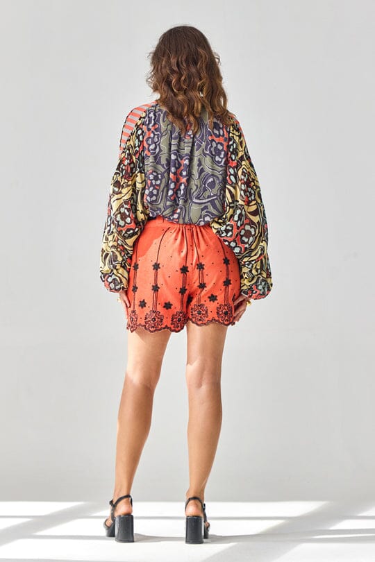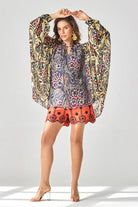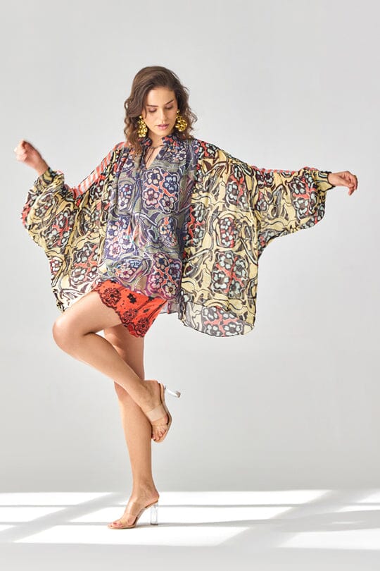 Get party-ready with this striking co-ord set featuring a blouse adorned with intricate thread bullion stitch detailing and playful beaded tassels. Paired with chic, beaded shorts complete with a waist tie-up and functional pockets, this set is designed to bring elegance and fun to your evening look.