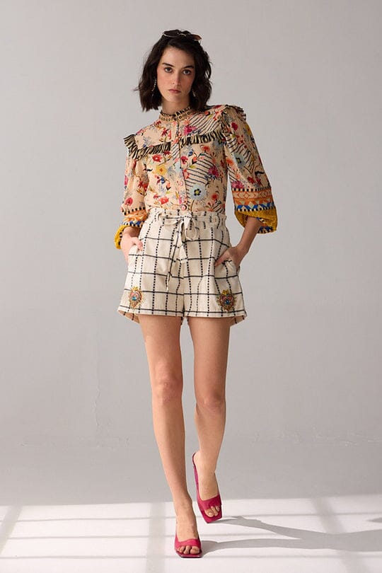 Stay comfy and chic in the Vama cotton shorts, featuring whimsical heart-shaped eye embroidery.