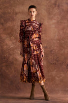 Printed lace detailing ruched blouse with cutwork detailing skirt