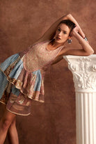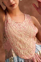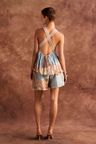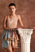 Patch work blouse with embroidered crochette yoke with patch work lace detailing shorts.