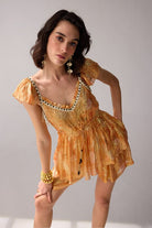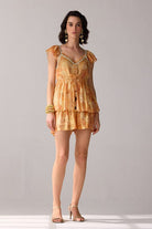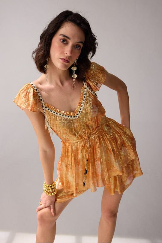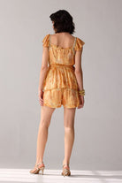 Make a chic statement with effortless ease in these multi-printed, striped, lurex shorts with dynamic prints and shimmering gold stripes cohesively creating a stylish look.