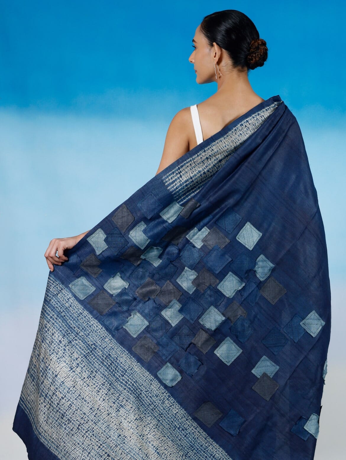 Shibori Sari with Patchwork