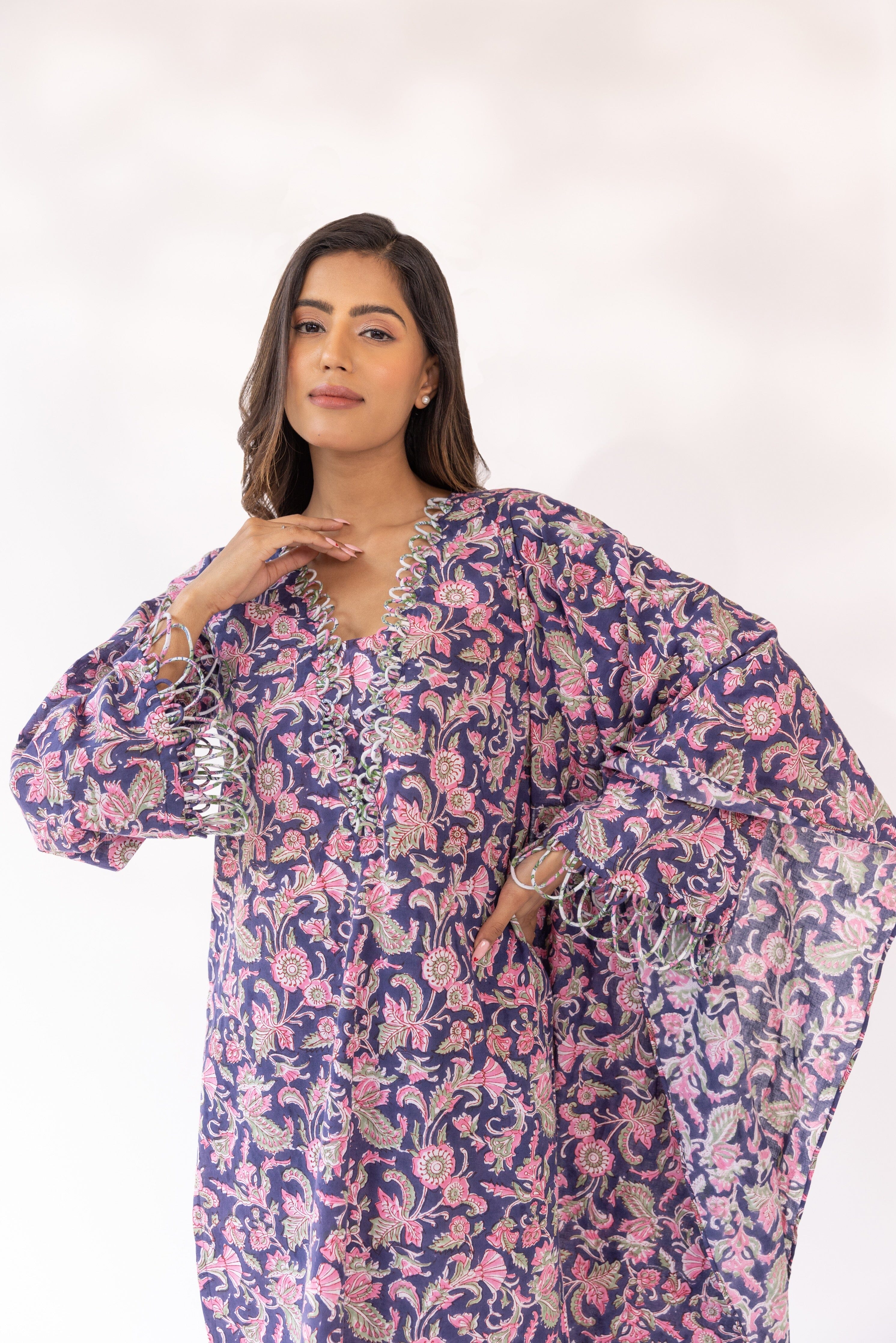 CONJUNTO DE KURTA CON ESTAMPADO DE BLOQUES DE IRA Y DUPATTA