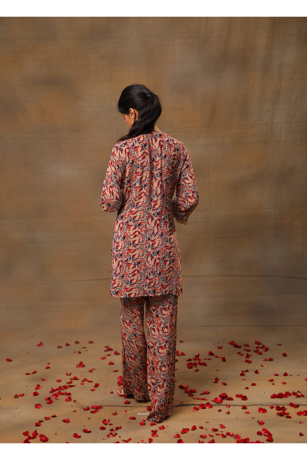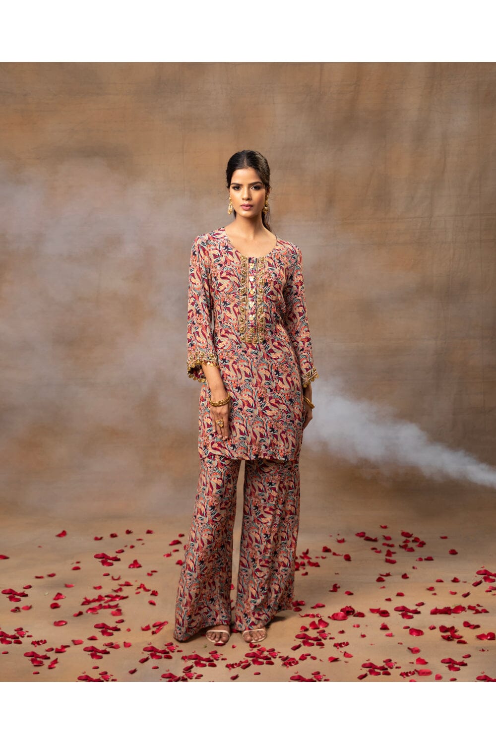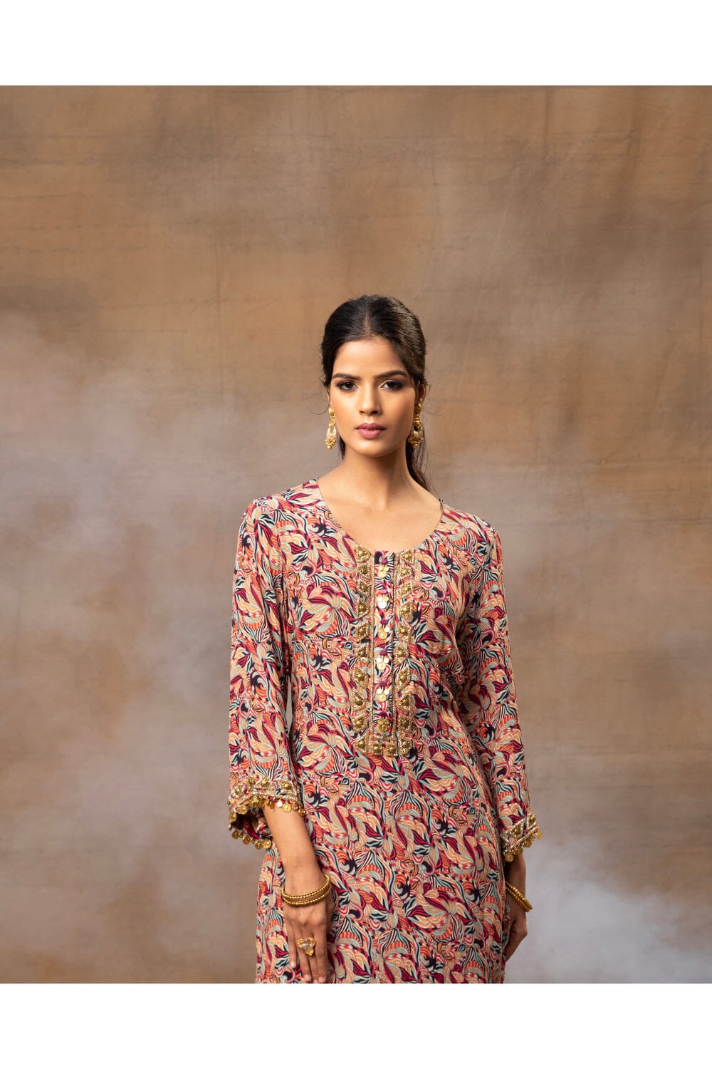 Perfecto para festividades íntimas, este conjunto de Kurta y pantalones logra el equilibrio ideal entre el encanto clásico y el estilo contemporáneo, lo que lo hace versátil para celebraciones diurnas o reuniones nocturnas. Ya sea que asistas a una reunión familiar, una boda a pequeña escala o un festival alegre, este conjunto promete hacerte sentir segura y radiante.