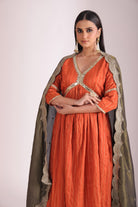 Mastani Rust Orange Chanderi Anarkali And Pant With Dupatta- Set Of 3