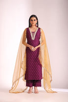 Mastani Wine Chanderi Kurta And Pant With Dupatta - Set Of 3