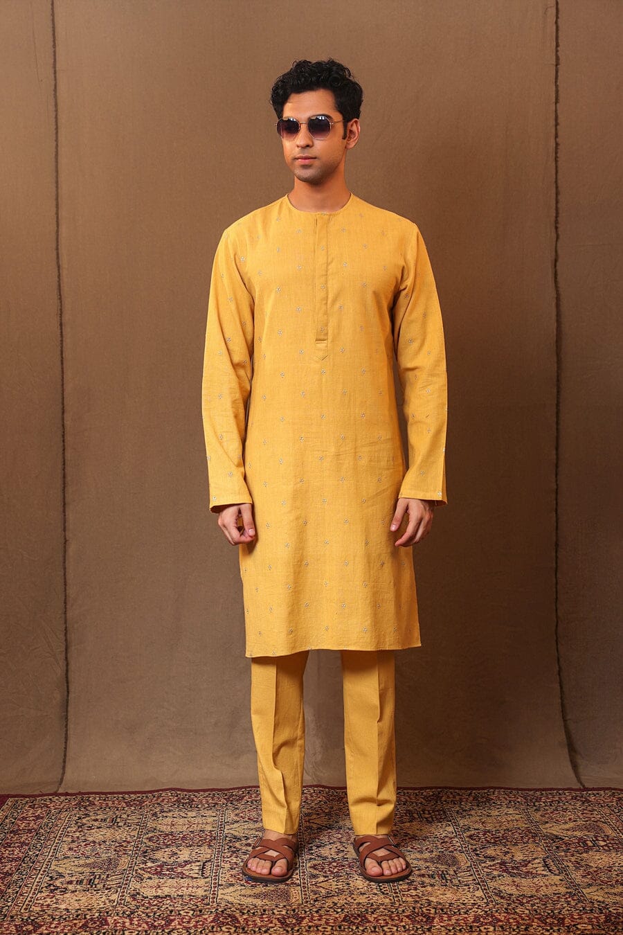 Mustard STR Buttoned Kurta Set (2 PCS)